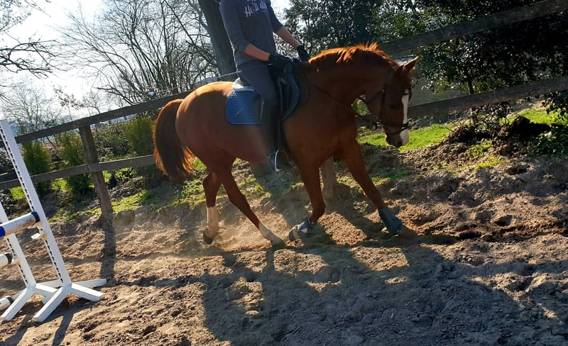 6-year-old chestnut gelding - a true heart horse With a heavy heart, we are looking for a new home for our dear chestnut gelding. Mackey is 148 cm tall and a reliable partner with a great personality. He is well ridden and well-behaved. In dressage, he is trained up to L level and is familiar with working with hounds (as a drag horse or for hunting). He has a good jump but does not have much experience. He has also been happily ridden by less experienced riders. He was ridden by my son, who is no longer interested in riding. He is good with children and can be vaulted. Mackey has a mild summer eczema, which is hardly noticeable with half-day pasture turnout. He is not being treated for it. If you are looking for a loyal heart horse that enjoys versatile work and loves human contact, you will find the perfect partner. For serious inquiries, we look forward to your message! Viewing and getting to know him on-site is possible at any time. Contact: 015228008206 Only in the very best hands – not a forced sale!