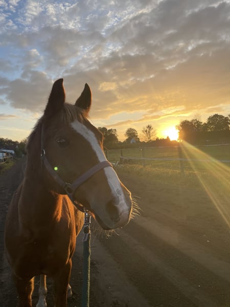 Ich suche auf diesem Weg ein liebevolles, erfahrenes Zuhause für meinen 17-jährigen Wallach Deimi. Er ist ein Araber–Deutsches Reitpony-Mix, etwa 1,54 m groß, ein hübscher Fuchs und seit 4 Jahren mein treuer Begleiter. Deimi lebt aktuell in Schleswig-Holstein, Nähe Hamburg. Was du über Deimi wissen solltest da er einen Befund im Becken hat (leicht schief) und einen minimalen Senkrücken. Braucht er viel Training und Muskel Aufbau fürs reiten. Dadurch hebt er seinen Schweif immer ein wenig. Trotzdem ist er körperlich fit und kann super für Bodenarbeit genutzt werden. Er liebt es: • spazieren zu gehen • an der Longe zu arbeiten • frei zu springen • neue Dinge auszuprobieren • kleine Tricks zu lernen • Übergänge zu machen und sich auszutoben Etc. Er ist sehr sportlich, motiviert und möchte seinem Menschen gefallen. Charakterlich ist er einfach der Coolste – lieb, aufmerksam und immer bei dir. Haltung & Sozialverhalten • sehr rangniedrig • braucht unbedingt feste Pferdefreunde, er steht nicht gern allein • sowohl Box als auch Offenstall kennt er und verträgt beides super • Sommer: 24/7 auf der Weide, Winter: nachts in der Box • keinerlei Unarten – er beißt oder tritt nicht und ist immer respektvoll Deimi muss nicht täglich bewegt werden, freut sich aber, wenn er regelmäßig Beschäftigung bekommt. Was du über mich wissen solltest und was ich mir für sein neues Zuhause wünsche Ich bin Levke, 17 Jahre, und habe Deimi 4 Jahre lang über alles geliebt. Durch meine Ausbildung fehlt mir jedoch inzwischen die Zeit, die er verdient. Es fällt mir sehr schwer, ihn abzugeben, aber ich bin sicher, dass er ein anderes Mädchen oder einen Jungen sehr glücklich machen kann. Für Deimi wünsche ich mir jemanden, der: • Erfahrung mit Pferden hat • sicher mit temperamentvollen Pferden umgehen kann (er hat manchmal Power) • genügend Zeit, Geduld und Freude an Bodenarbeit mitbringt • ihm ein stabiles, freundliches Herdenumfeld bieten kann Interesse? Bei weiteren Fragen oder wenn du mehr über Deimi wissen möchtest, melde dich gerne privat.