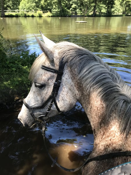 🐴 Arabian-Riding Pony Cross Gelding – Looking for a Loving Forever Home 🐴 With a heavy heart, I am seeking a suitable forever home for my loyal gelding, where he can continue to be cared for and loved. Beau is 17 years old, stands at 14.9 hh, and is an Arabian-Riding Pony cross. He has reliably been a companion in my life since he was 4 years old. He has been ridden recreationally with a focus on dressage but also enjoys hacking – alone or in a group – both without any issues. He is clear-minded, brave, and always friendly, though he can occasionally be a bit stubborn. He needs a rider who can provide him with confidence, as he tends to test boundaries otherwise. However, he has no vices such as rearing or bucking. He has a hay dust allergy, which is well-managed with good-quality or soaked (e.g., wrapped) hay. Straw bedding has also never been a problem. He is familiar with both box stall housing with at least 8 hours of turnout daily and open stable management. He wears front shoes and is perfectly behaved at the farrier and during loading. He is not dominant and gets along best in all gelding groups. He loves companions that are playful, as he remains very lively despite his age. Due to my children, I unfortunately no longer have the time to regularly exercise and engage him. He is very motivated and enjoys regular work, but shows no issues when given a break. Currently, he is not in peak training due to my time constraints. Price is not a priority – I am much more interested in finding a perfect, loving forever home for him. Further details gladly discussed in person ☺️