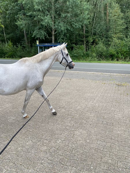 For a protection fee. Our 20-year-old German Riding Pony gelding is looking for a loving home. Height: 1.45m, always in good health and only not rideable due to an old injury. Very easy to care for, friendly, and cuddly. Loves contact with his friends. We look forward to hearing from you only if you are genuinely interested. It is already very difficult for us to let him go. We are happy to answer any further questions.