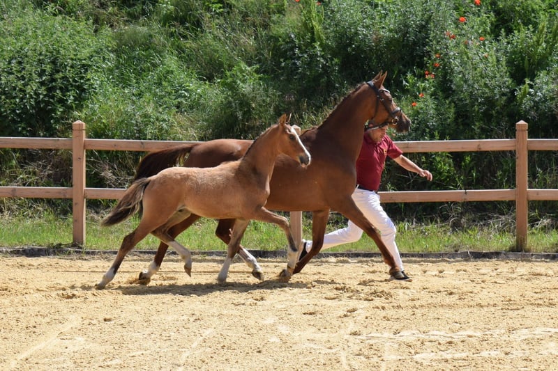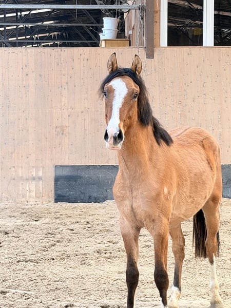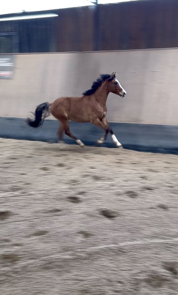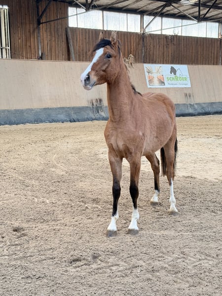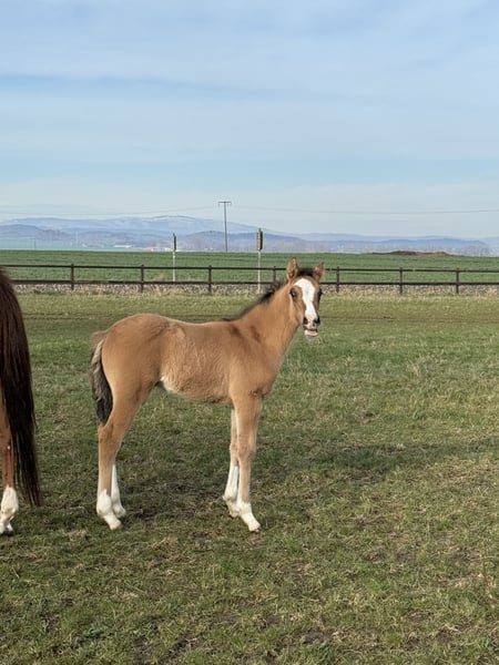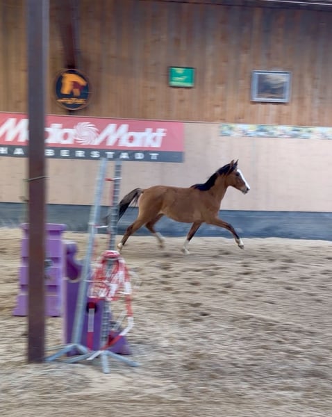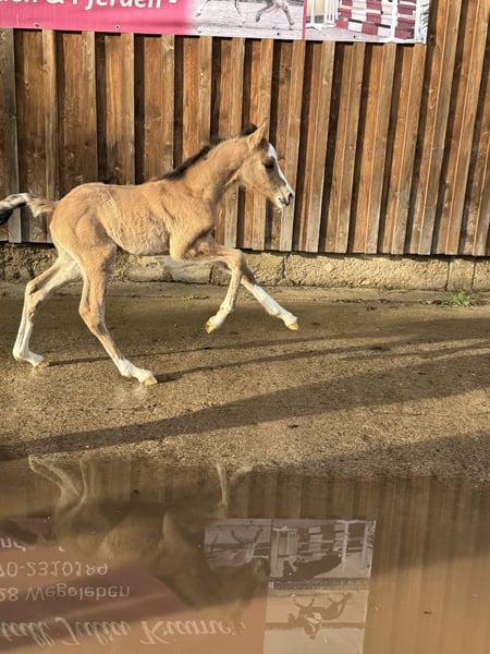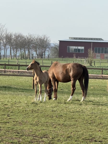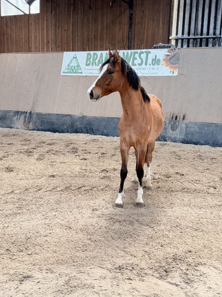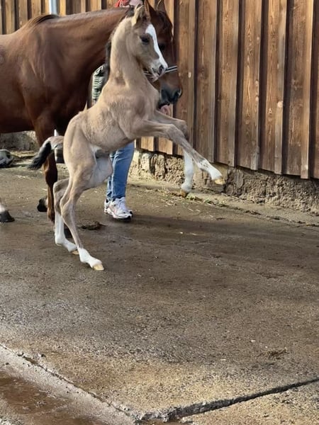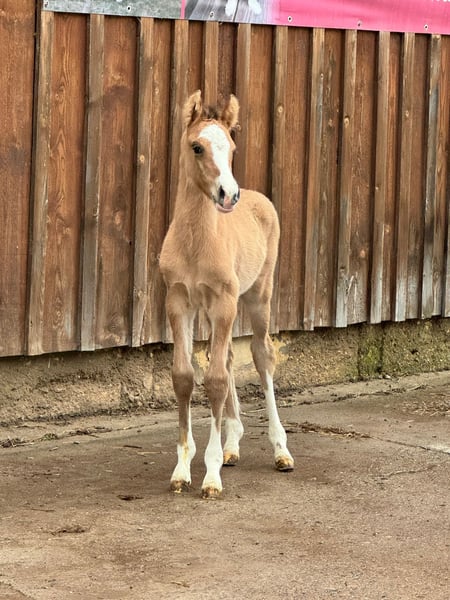 ✨ Deutsches Reitpony – 2024 geboren – Falbe – Championatsfohlen – Sportliche Zukunft ✨ Charleston, ein 2024 geborener Deutsches‑Reitpony‑Wallach in der attraktiven Farbe Falbe, sucht ein förderndes Zuhause. Er besticht durch seine tolle Aufmachung, sein menschenbezogenes, freundliches Wesen und eine sehr gute Entwicklung für sein Alter. 🔹 Abstammung & Zucht • Mutter: Farideh – sie hat bereits mehrere erfolgreiche Sportnachkommen hervorgebracht und stammt aus einer hochinteressanten Linie über Vivaldi und Krack C. • Vater: Charming Boy Ein gekörter Sohn aus der Mutter • Viele seiner Geschwister wurden erfolgreich auf Auktionen versteigert, was die Qualität dieser Linie zusätzlich unterstreicht. • Mutter und Geschwister können vor Ort besichtigt Charleston wurde bei uns geboren und ist im Herdenverband artgerecht aufgewachsen. 🔹 Exterieur & Charakter • Aktuelles geschätztes Stockmaß: ca. 1,46 m • Frisch kastriert • Als Fohlen mit einem Championats-Titel ausgezeichnet • Sehr lieb, kooperativ, menschenbezogen und sozialverträglich • Ein junger Wallach mit Herz aus Gold 🔹 Bewegungsqualität & Perspektive Charleston verfügt über drei sehr gute Grundgangarten mit viel Elastizität und Ausdruck. Sein Interieur, seine Bewegungsqualität und seine Abstammung machen ihn zu einem vielversprechenden Nachwuchspony für den Turniersport. 🔹 Fazit Ein hochinteressanter junger Wallach mit hervorragender Abstammung, tollem Charakter und sportlicher Perspektive. Charleston bringt alles mit, um im Turniersport aufzufallen und seinem zukünftigen Menschen viel Freude zu bereiten.