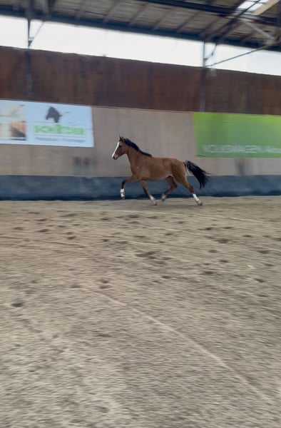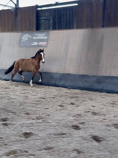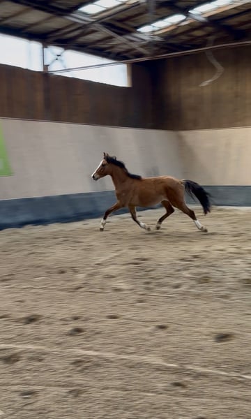 ✨ Duits dressuurpony – Geboren in 2024 – Voskleur – Kampioensveulen – Sportieve toekomst ✨ Charleston, een in 2024 geboren Duits dressuurponyhengst in de aantrekkelijke voskleur, zoekt een liefdevol en stimulerend thuis. Hij valt op door zijn mooie uitstraling, zijn mensgerichte en vriendelijke aard en een zeer goede ontwikkeling voor zijn leeftijd. 🔹 Afstamming & fokkerij • Moeder: Farideh – zij heeft meerdere succesvolle sportpaarden voortgebracht en komt uit een zeer interessante lijn via Vivaldi en Krack C. • Vader: Charming Boy Een gekeurde zoon van de moeder • Veel van zijn broers en zussen zijn succesvol verkocht op veilingen, wat de kwaliteit van deze lijn extra onderstreept. • Moeder en broers/zussen zijn ter plekke te bezichtigen. Charleston is bij ons geboren en is in een natuurlijke groep opgegroeid. 🔹 Uiterlijk & karakter • Huidige geschatte stokmaat: ca. 1,46 m (14.1 hh) • Recent gecastreerd • Als veulen bekroond met een kampioenschaps-titel • Zeer lief, coöperatief, mensgericht en sociaalvaardig • Een jonge hengst met een hart van goud 🔹 Bewegingskwaliteit & perspectief Charleston beschikt over drie zeer goede basisgangen met veel elastiek en uitstraling. Zijn innerlijk, bewegingskwaliteit en afstamming maken hem tot een veelbelovend jong pony voor de wedstrijdsport. 🔹 Conclusie Een zeer interessante jonge hengst met uitstekende afstamming, een geweldig karakter en sportieve perspectieven. Charleston heeft alles in huis om op te vallen in de wedstrijdsport en zijn toekomstige eigenaar veel plezier te brengen.