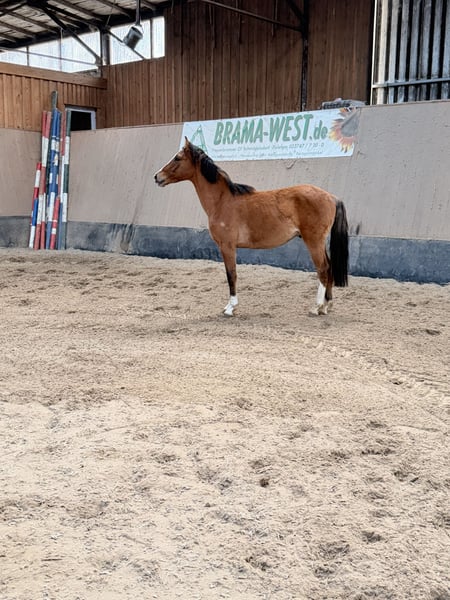 ✨ Deutsches Reitpony – 2024 geboren – Falbe – Championatsfohlen – Sportliche Zukunft ✨ Charleston, ein 2024 geborener Deutsches‑Reitpony‑Wallach in der attraktiven Farbe Falbe, sucht ein förderndes Zuhause. Er besticht durch seine tolle Aufmachung, sein menschenbezogenes, freundliches Wesen und eine sehr gute Entwicklung für sein Alter. 🔹 Abstammung & Zucht • Mutter: Farideh – sie hat bereits mehrere erfolgreiche Sportnachkommen hervorgebracht und stammt aus einer hochinteressanten Linie über Vivaldi und Krack C. • Vater: Charming Boy Ein gekörter Sohn aus der Mutter • Viele seiner Geschwister wurden erfolgreich auf Auktionen versteigert, was die Qualität dieser Linie zusätzlich unterstreicht. • Mutter und Geschwister können vor Ort besichtigt Charleston wurde bei uns geboren und ist im Herdenverband artgerecht aufgewachsen. 🔹 Exterieur & Charakter • Aktuelles geschätztes Stockmaß: ca. 1,46 m • Frisch kastriert • Als Fohlen mit einem Championats-Titel ausgezeichnet • Sehr lieb, kooperativ, menschenbezogen und sozialverträglich • Ein junger Wallach mit Herz aus Gold 🔹 Bewegungsqualität & Perspektive Charleston verfügt über drei sehr gute Grundgangarten mit viel Elastizität und Ausdruck. Sein Interieur, seine Bewegungsqualität und seine Abstammung machen ihn zu einem vielversprechenden Nachwuchspony für den Turniersport. 🔹 Fazit Ein hochinteressanter junger Wallach mit hervorragender Abstammung, tollem Charakter und sportlicher Perspektive. Charleston bringt alles mit, um im Turniersport aufzufallen und seinem zukünftigen Menschen viel Freude zu bereiten.