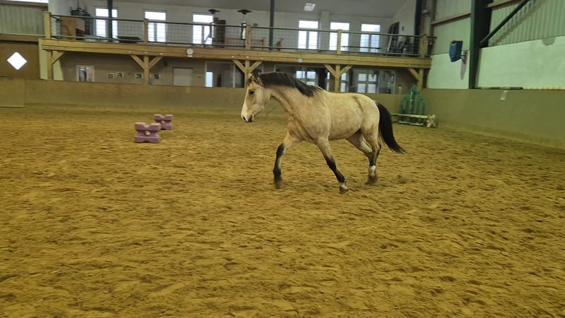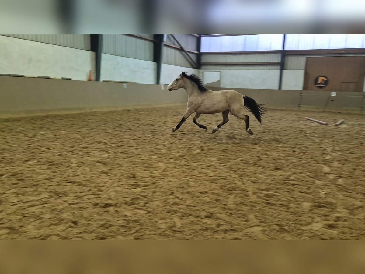 Verkaufe deutsches Reitpony – Wallach, Geburtsjahr 2023, Buckskin Dieser wunderschöne deutsche Reitpony-Wallach wurde im Jahr 2023 geboren und besticht durch sein elegantes Buckskin-Fell. Mit einem Stockmaß von 152 cm erreicht er die perfekte umgängliche Größe. Der Wallach wird später mit der richtigen Ausbildung, vielseitig im Dressurbereich einsetzbar und zeigt bereits jetzt schon vielversprechende Ansätze für die zukünftige Ausbildung. Sein freundliches Wesen und seine Lernbereitschaft machen ihn zu einem angenehmen Begleiter im Umgang und im Training. Noch ist er roh, erfahrene Reiter können sich mit ihm einen perfekten Partner schmieden. Bei Interesse oder weiteren Fragen stehe ich gerne zur Verfügung.