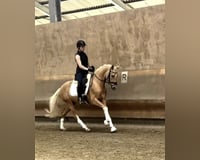 Zum Verkauf steht ein wunderschöner XXL Reitpony Wallach, geboren im Jahr 2022. Dieser charmante Palomino Wallach hat ein Stockmaß von 153 cm und eignet sich hervorragend für die Dressur. Unser Pony besticht durch sein freundliches Wesen und seine Lernbereitschaft. Er ist gut im Umgang und zeigt bereits vielversprechende Ansätze in der Dressurausbildung. Mit seinem eleganten Erscheinungsbild und seinem tollen Charakter ist er der ideale Partner für Kinder oder auch für den Erwachsenen. Er ist sowohl im Umgang als auch unter dem Sattel brav. Das Pony ist gesund, geimpft und entwurmt. Er besitzt einen TÜV ohne Befund.