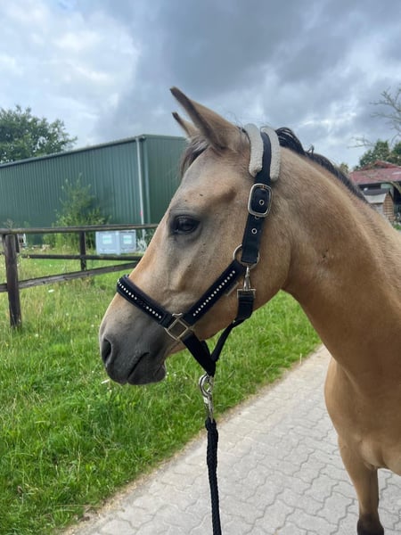 Zum Verkauf steht ein Reitponywallach von Dating AT aus einer Nemax Mutter. „Dino“ ist 3,5 Jahre alt und aktuell ohne Eisen ca 1,41 groß. Da er erst spät gelegt wurde, steht er noch voll in der Entwicklung und ist sichtlich überbaut. Ich schätze er wird ein Endmaß von ca. 1,45 erreichen und bleibt damit perfekt im Ponymaß. Wachstumsbedingt wird er erst jetzt an die Arbeit unter dem Sattel herangeführt. Dabei zeigt er sich als sehr aufgeschlossen und gelehrig. Aktuell lässt er sich bereits im Schritt und Trab frei reiten. Er kann auch jetzt schon problemlos von kleinsten Kindern geritten und gehändelt werden. Im Alltag lässt er sich von nichts so schnell aus der Ruhe bringen. Auch in fremder Umgebung hat er sich jederzeit gelassen gezeigt. „Dino“ überzeugt nicht nur mit seiner lässigen Art, sondern auch mit 3 sehr schönen und sitzbequemen GGA mit FEI Qualität. Wenn er noch etwas Zeit bekommt um zu reifen und in Form zu wachsen, wird Dino sicherlich später einmal ein absoluter Barbie-Mädchentraum und ein zuverlässiger Begleiter für Sport und Freizeit. Aktuell für schnellentschlossene noch günstig abzugeben, Preis steigt mit weiterer Ausbildung.