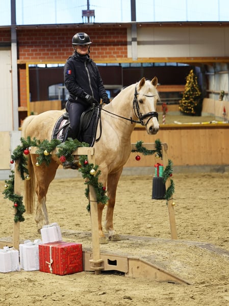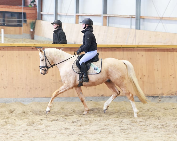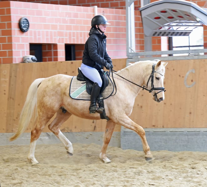 Dionis ist solide angeritten und wurde wegen seiner lieben Art auch schon im Gelände geritten. Er hat eine raumgreifenden Schritt und einen enorm schwungvollen Trab, der begeistert. Ein tolles Dressurpony der Extraklasse wächst da heran und der erste Turnierstart steht demnächst an. Erste kleine Sprünge haben wir auch schon gemacht. Gerne in sportlich fördernde Hände, da auch schon sein Vater von uns ist und Dionis als sein erster Sohn für uns etwas ganz besonderes ist. WAr bis 3 jährig in Hengstgruppe in Offenstallhaltung bei mir. Kennt also Box und Gruppenhaltung. Läuft noch barhuf