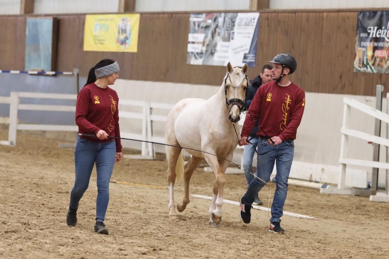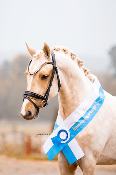Zum Verkauf steht ein vielversprechender Deutsches Reitpony-Wallach, geboren im Jahr 2022. Dieser charmante Palomino besticht durch sein freundliches Wesen und seine elegante Erscheinung. Mit einem Stockmaß von 143 cm ist er perfekt geeignet für den ambitionierten Nachwuchsreiter oder den aufstrebenden Nachwuchssportler. Der junge Wallach verfügt über eine solide Grundausbildung im Dressursport und zeigt bereits erste vielversprechende Bewegungen. Sein angenehmer Charakter und seine gut gerittene Grundhaltung machen ihn zu einem zuverlässigen Partner, der sowohl im täglichen Training als auch in der Turniervorbereitung überzeugt. Dieses Deutsche Reitpony vereint typische Eigenschaften seiner Rasse – Trittsicherheit, Lernwilligkeit und eine ausgeprägte Bereitschaft, Neues zu lernen. Aufgrund seines Alters ist er ideal für den Aufbau einer langfristigen Karriere im Dressursport geeignet. Bei Interesse freuen wir uns auf Ihre Kontaktaufnahme, um weitere Details zu besprechen und einen persönlichen Eindruck zu ermöglichen. BITTE NUR BEI ERNSTHAFTER INTERESSE KONTAKTIEREN