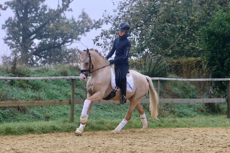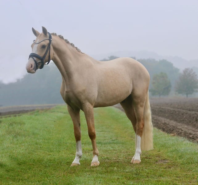 This stunning, well-built pony gelding is a real eye-catcher and boasts three truly excellent gaits. Currently approximately 146 cm, so he will likely stay within pony size. The pony is well-schooled and, with proper encouragement, will undoubtedly become a future championship pony. Very well-behaved both in handling and under saddle. However, he is still in full development and at the beginning of his training, requiring a confident rider at the moment. In the long run, he is perfectly suitable for children. Excellent X-ray images are available for viewing in advance. Priced according to his quality, but definitely a top-quality horse rather than a bargain. Directly from the breeder!