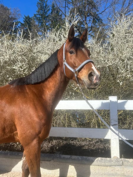 Zum Verkauf steht ein ganz besonderer Wallach, der durch seine sensible und feine Art besticht. Dusty sucht einen erfahrenen Reiter der ihm die nötige Sicherheit gibt. Hat er einmal Vertrauen gefasst zeigt er sich unglaublich loyal, aufmerksam und möchte gefallen. Im Umgang ist er ausgesprochen freundlich, hier wird er regelmäßig von Kindern geputzt und longiert. Dusty ist angeritten und hat auch schon die ersten kleinen Sprünge unter dem Reiter gemeistert. Im Freispringen zeigt er großes Potenzial. Er kennt Halle, Platz und Gelände. Im Gelände zeigt Dusty sich vorbildlich und läuft zuverlässig. Er steht aktuell im Offenstall und zeigt sich hier verträglich und unkompliziert. Regelmäßig entwurmt und geimpft. Nähere Infos unter: +49 173 9748897