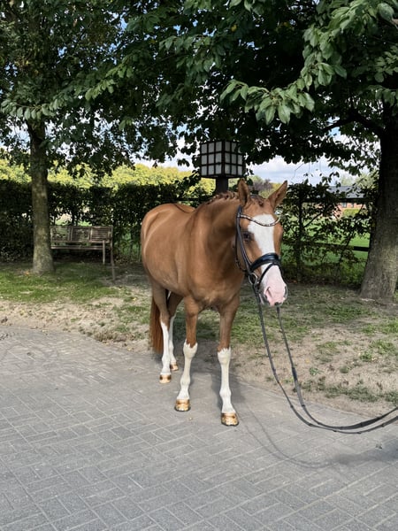 For sale is this very colorful and beautiful chestnut gelding. He is an exceptionally typy and elegant XL pony, with a top conformation. The charming young horse impresses with a positive attitude and three very good basic gaits. Carefully and age-appropriately trained, he combines excellent fundamental quality, great rideability, and an engaging personality – a pony that delights both experienced amateurs and ambitious competitive riders. In daily handling, he is very gentle, friendly, and affectionate. A video can be sent via WhatsApp.