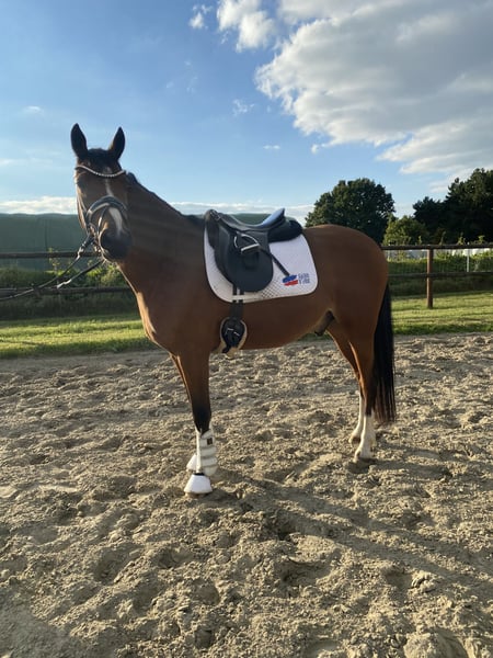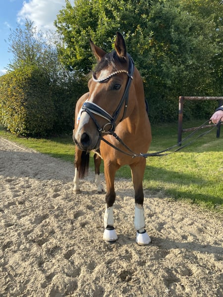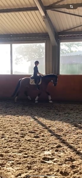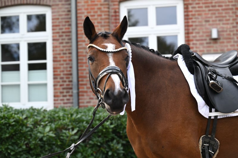 Coming Home, genannt Conrad, ist ein vierjähriger XXL Reitponywallach, aber von den Bewegungen her eher ein Großpferd im Kleinformat. Sein unerschütterlich takt- und schwungvoller Trab, sein sehr guter Schritt und guter Galopp machen ihn zu einem perfekten Partner fürs große Viereck. Er ist altersentsprechend in allen drei GGA zu reiten und macht täglich Spaß. Seine Abstammung von Doppelbundeschampion und mehrfach Europameisterschaftsteilnehmer DSP Cosmo Royale x Blachet (CastonTG) spricht für sich. Der 3/4 Bruder „Chocolatier“ steht als Prämienhengst auf dem Landgestüt Redefin. Conrad ist sehr personenbezogen und liebt es stundenlang betüddelt zu werden. Er wurde auch schon problemlos von einem 11 jährigen Mädchen geritten und ist sehr leicht am Zügel zu reiten. Daher ist er auch für körperlich schwächere Reiter bestens geeignet. Mit seinem Stockmaß von aktuell ca. 1,55m eignet er sich sowohl für Kinder als auch kleinere Erwachsene. Auch als zukünftiges Childrenpferd sehr gut denkbar. Aufgrund des Ausbildungsstandes noch kein reines Anfänger/Kinderpony, wohl aber schon für ein gut reitendes Mutter-Kind-Team/ gut betreutes Reiterlein. Unarten wie losrennen oder steigen kennt er nicht. Seinen ersten Turnierstart hatte er kürzlich in einem Reiterwettbewerb mit einer jugendlichen Reiterin. Hier zeigte er sich überdurchschnittlich brav für sein Alter und belegte direkt den dritten Platz. Siegerehrung und Applaus, kein Problem für das junge Pony. In seiner ersten und bisher einzigen Dressurpferde A konnte er sich sofort in einem starken Starterfeld gegen Großpferde platzieren. Den Tierarzt hat er bisher nur zur Kastration, Zähne machen und zum impfen gesehen. Er steht in der Herde und kennt täglichen Weide-/Paddockgang, Führanlage, kleine Runden um die Weiden reiten und hat schon 1 x Freispringen gemacht. Auch hier zeigte er sich talentiert, wurde aber dahingehend noch nicht weiter gefördert. Als Fohlen erhielt Conrad bei der Eintragung die Prämie und die 9,0 für den Trab. Danach habe ich ihn als Absetzer direkt vom Züchter gekauft und professionell und artgerecht in einer Herde aufziehen lassen. Der Verkauf erfolgt schweren Herzens und ausschließlich aufgrund von weiterer, eigener Nachzucht. Bei Bedarf kann er auch noch zur weiteren Ausbildung bis nächstes Jahr bleiben. Conrad wird nur in ein wertschätzendes Zuhause mit artgerechter Haltung abgegeben. Bitte keine Händler! Er wird nicht zur Verfügung gestellt. Eine AKU kann jederzeit vom Käufer beauftragt werden. Normale Trainingsvideos auf Anfrage, kein extra „strampeln lassen“.