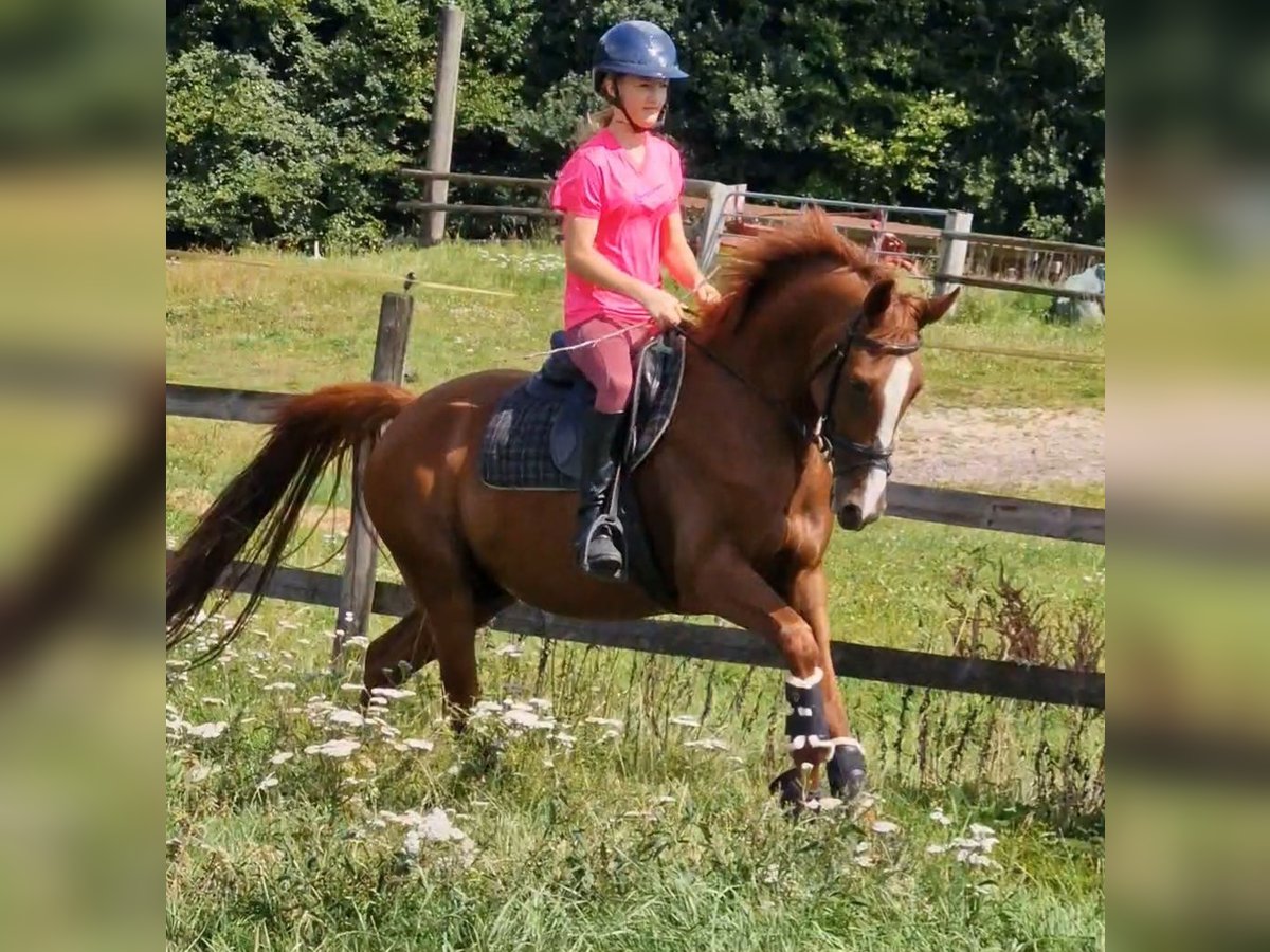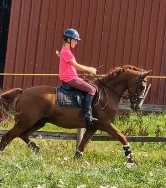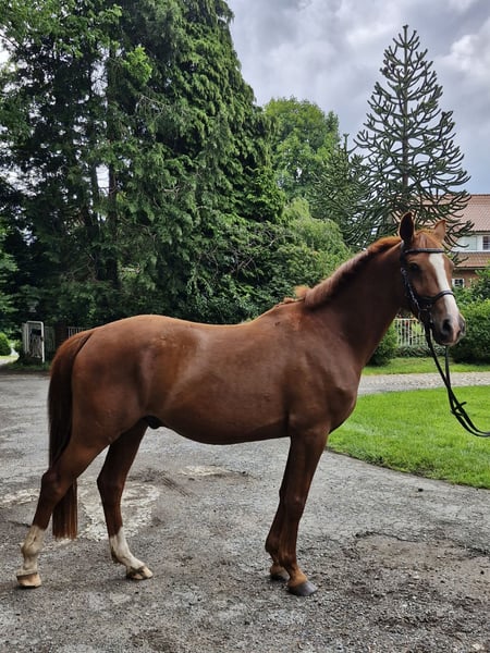 For sale is this beautiful gelding. Nimbus received a premium as a foal. He is 1.46 meters tall, 4 years old, and very friendly to handle. He was born here and is familiar with everything that happens on a farm – a cool pony! He goes out on trail rides with children in a group and is very well-behaved. Of course, he still needs further training. I wish for a horse family, a mother with a child, to grow strong together. Nimbus is easy to ride with soft gaits. He is naturally equipped with three very good basic gaits. He is super easy to ride on the bit. The perfect ribbon collector. In the herd and on the pasture, he is low in rank. His mother, Dolores, is a state premium mare and the mother of a stallion, among others. Her daughters and sons are competing in sports. The father, Neverlend WE, is impressive in every way. His numerous titles speak for themselves: Champion stallion of the Weser Ems licensing, multiple Oldenburg champion of young riding pony stallions, consistently placed in the finals of the Bundeschampionat, and emerged as the winner at the age of six. In the same year, he achieved his first victory at the first FEI competition. Now he has reached this level and has already won an international kür with his only 13-year-old rider Lilli von Helldorf, scoring 75.28% against a strong field. His offspring consistently draw attention to Neverland WE as a sire. To prevent riding tourism, trial rides cost 30 euros, which will of course be deducted from the purchase price.