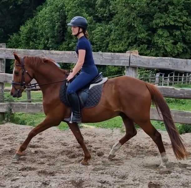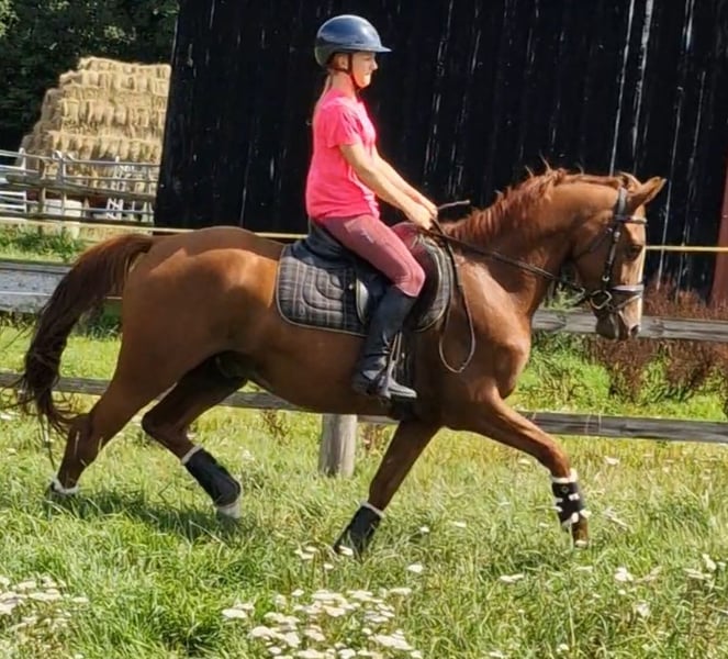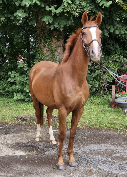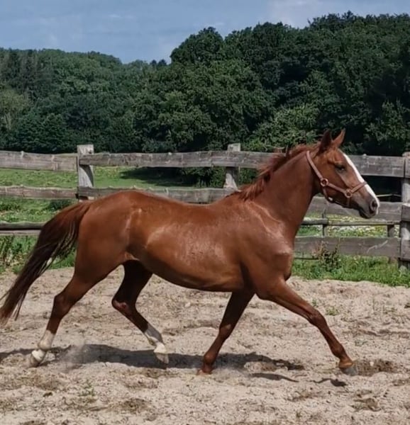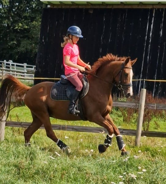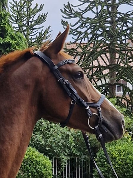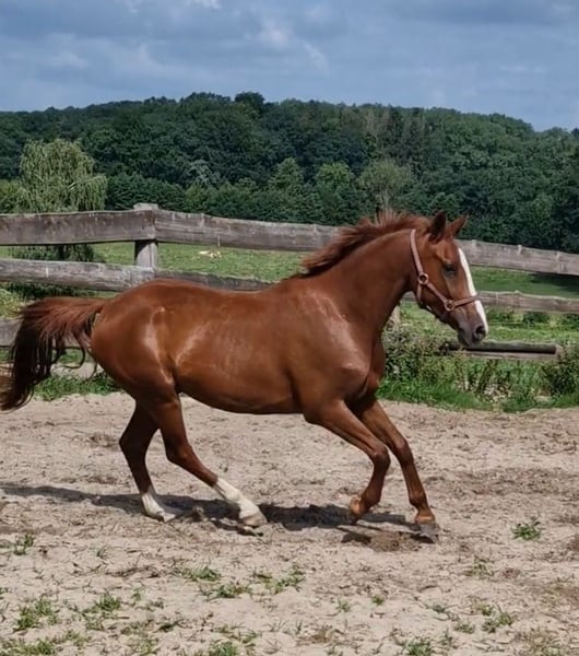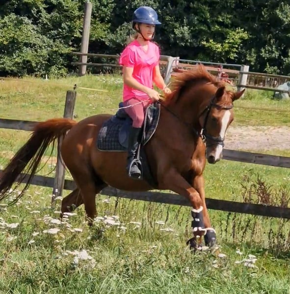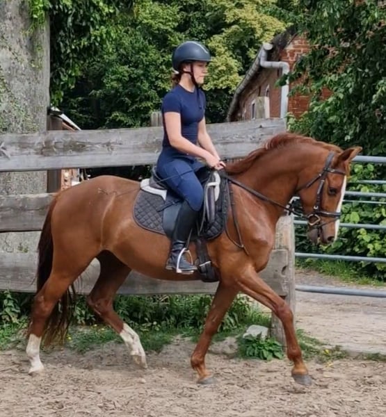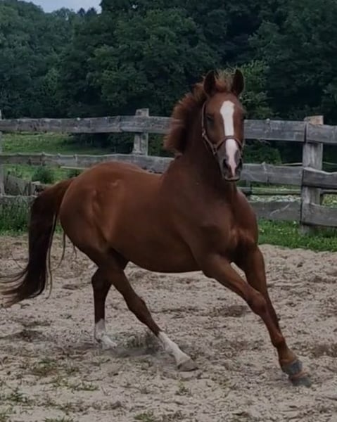 À vendre, ce magnifique hongre. Nimbus a reçu un prix lorsqu'il était poulain. Il mesure 1,46 m, a 4 ans et est très gentil au contact. Il est né ici et connaît tout ce qui se passe dans une ferme, un poney vraiment cool ! Il part en balade avec les enfants en groupe, très sage. Bien sûr, il doit encore être formé davantage. Je souhaite une famille équestre, mère avec enfant, qui deviendra forte ensemble. Nimbus est facile à monter, avec des allures douces. Il est naturellement doté de 3 excellentes allures de base. Il est super facile à monter à la rêne. Le parfait collecteur de rubans. Dans le troupeau et au pré, il a un rang inférieur. Sa mère, Dolores, est une jument primée d'État, mère de plusieurs étalons. Ses filles et fils se distinguent dans le sport. Le père, Neverlend WE, sait convaincre sur toute la ligne. Ses nombreux titres parlent d'eux-mêmes : Étalon vainqueur de la sélection Weser Ems, multiple champion des jeunes étalons de poney de sport d'Oldenbourg, a été placé plusieurs fois en finale du Bundeschampionat et a remporté le titre en tant que cheval de 6 ans. La même année, il a remporté sa première victoire lors de la première épreuve FEI. Il a maintenant atteint ce niveau et a déjà remporté avec sa cavalière de seulement 13 ans, Lilli von Helldorf, un programme international avec 75,28 % face à un fort plateau de départ. Ses descendants attirent également constamment l'attention sur Neverland WE en tant que reproducteur. Pour éviter le tourisme équestre, le coût de l'essai de monte est de 30 euros. Cela sera bien entendu déduit en cas d'achat.