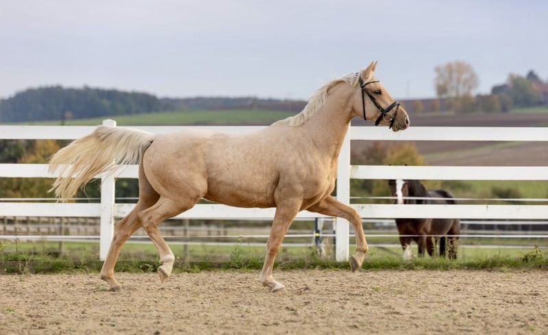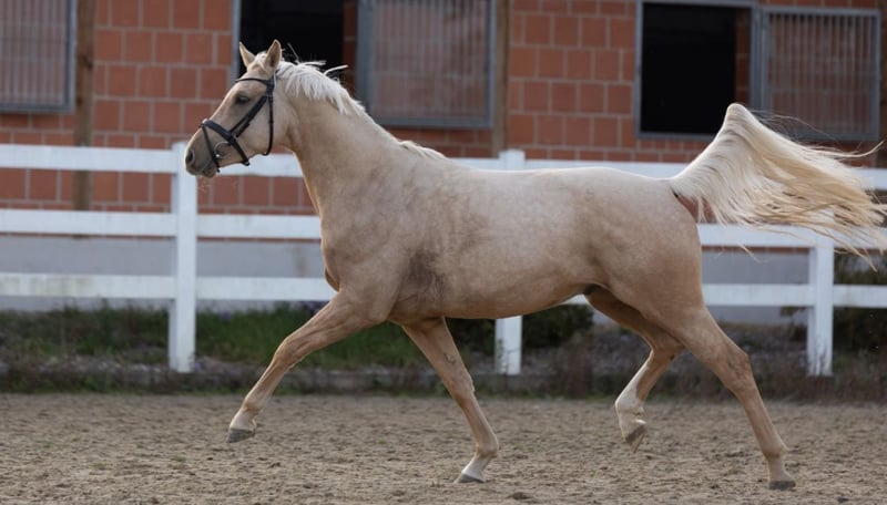 Our golden champion, also affectionately known as "Champi", has three very good gaits and great rideability in addition to his fantastic appearance. Champi always wants to please his rider. He is currently well broken in. Without shoes you can see his great gaits in the video! Champi has a wonderful character and is uncomplicated to handle. He is also very uncomplicated with other horses. Going to the farrier and driving a transporter are no problem at all for him. Champi also really enjoys free jumping. He has not yet jumped under a rider, but he has done pole work on the lunge. His sire is none other than D-Gold AT, who has passed on his walk to Champi in the best possible way! Please call if you have any questions. I charge €30 for the test ride, which will of course be deducted from the purchase price. A current MOT is not available, but can be done by the buyer on request.