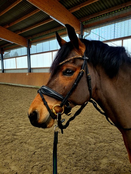 Nogger ist ein brauner Wallach von Neverland, Dance Star AT, Don Joshi AT und ist 146 cm groß. Mit seiner charmanten Art wickelt er jeden um den Finger. Sehr schicker Hengsttyp, verschmust und absolut lieb im Umgang. Er wurde als 2,5 jähriger Hengst gekört, ist mittlerweile aber kastriert. Nogger hat bereits ein wenig Turnieratmosphäre kennengelernt. 3-jähirg wurde er 4. auf dem Landeschampionat und konnte sich dieses Jahr in Dressurpferde A gegen Großpferde hoch platzieren. Nebenbei hatte er nach der Körung und auch 3-jährig nochmal jeweils ein paar Monate frei. Schmiede- und Verladefrom. Er ist bei uns geboren, aufgewachsen und ausgebildet. Also direkt vom Züchter in allerbeste Hände und nur mit tollen Haltungsbedingungen zu verkaufen.