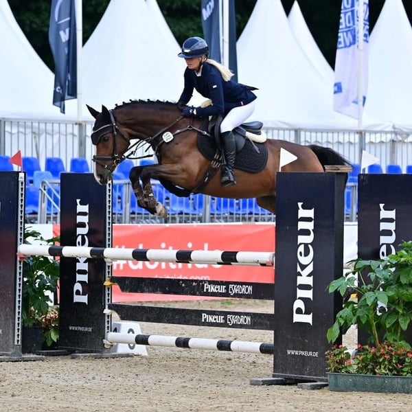 For sale is a really great 6-year-old riding pony gelding who leaves nothing to be desired. Choclati has no vices and is simply wonderful to ride, both for smaller riders and adults, super light in the contact, and he performs flying changes on his own and is just great with the right attitude. At 5 years old, he was already a bronze medal winner at the Bundeschampionat and at 6 years old he was also a finalist and placed, additionally he was the state champion of 6-year-old jumping ponies. His successes speak for themselves; Peter Teeuwen rates him as very powerful in jumping and sees him with the right support at championship level. We wish for our Choclati a great and supportive home. *Currently vetted with no findings. No equipment included, no provision or trade-in, trial rides possible at any time by arrangement.*