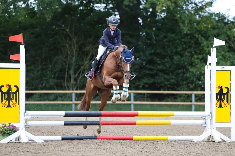 George ist für jeden Spaß zu haben. Er kennt Springen, Ausreiten, Turnier und Dressur - mit Kindern und Erwachsenen. Er ist nicht nur wie gemalt, sondern hat auch drei guten GGA’s. (Ehemals gekört, aber hat nicht gedeckt) Er liebt das Springen, ist dabei auch sehr motiviert - in der Dressur geht er mit und ohne Ausbindern - auch mit Kindern. Leicht am Zügel zu reiten und gehfreudig. Selbstverständlich ist er entwurmt und geimpft. Er ist verlade- und schmiedefromm & war bereits auf Turnier. Es liegt ein guter Röntgentüv (18 Bilder) vor