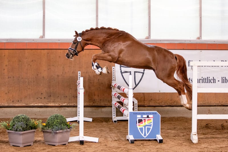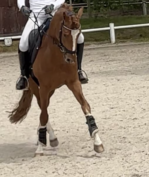 George is a horse that’s up for any fun activity. He is experienced in jumping, trail riding, competition, and dressage — with both children and adults. He is not only as charming as a picture but also has three good GGA scores. (Previously licensed for breeding, but he has not been used for stud.) He loves jumping and is very motivated in that discipline — he also performs well in dressage, with or without draw reins, and is comfortable working with children. He is easy to ride on the bit and willing to move forward. Of course, he has been dewormed and vaccinated. He is loading well and shoe-friendly, and has already competed in competitions. A recent good X-ray examination (18 images) is available.