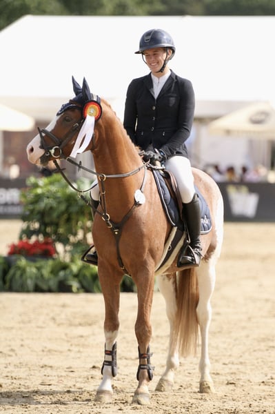 In vendita c'è il pony castrato di 6 anni Zippo de Luxe (Nilantshoeves Zippo x Fürst Nymphenburg) con un'altezza di 1,48 m. Zippo ha un'ottima galoppata ampia e un'andatura di salto uniforme e potente, con molta qualità e potenziale. Ha vinto sia nel salto ostacoli A** contro cavalli di grande taglia, sia nel salto pony L (8,3 nella qualificazione per il Bundeschampionat dei pony di 6 anni). Al Bundeschampionat ha ottenuto un ottimo terzo posto nella prova di ingresso con un punteggio di 8,3. Inoltre, ha dimostrato il suo coraggio anche nelle prove di cross-country, mostrando di affrontare questi compiti con facilità e gioia. Nel maneggio è estremamente gentile, ama i bambini ed è assolutamente affidabile. Zippo è abituato a essere montato da bambini, non mostra alcun comportamento scorretto come saltare o scalciare ed è tranquillo nel bosco. Zippo è adatto sia per il pony sportivo di alto livello che per i principianti nel salto. Un pony sportivo con molto talento e un carattere dolce – la combinazione perfetta per cavalieri ambiziosi.