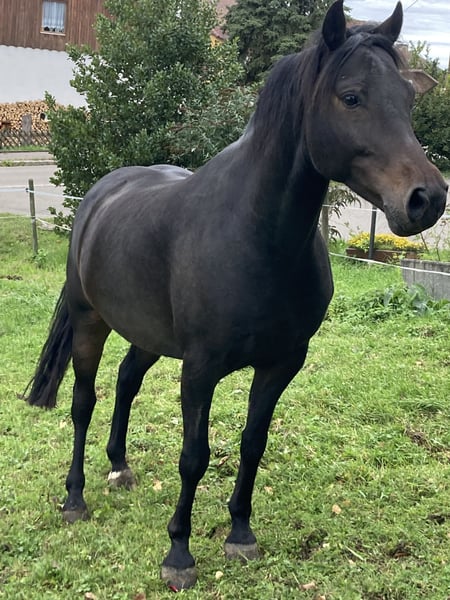 Zum Verkauf steht ein bildhübscher, dunkelbrauner Deutscher Reitpony-Wallach, geboren 2018. Er war das letzte Jahr durch äußere Umstände fast nur auf der Weide und ist jetzt seit 6 Wochen in Arbeit. Dabei macht er enorme Fortschritte und ist ruhig und unerschrocken. Die Videos zeigen seine allerersten Sprünge, absolut ehrlich ! Er ist neugierig und offen für alles. Dank seiner Vielseitigkeit wird er garantiert Spaß sowohl im Sport- wie auch im Freizeitbereich machen