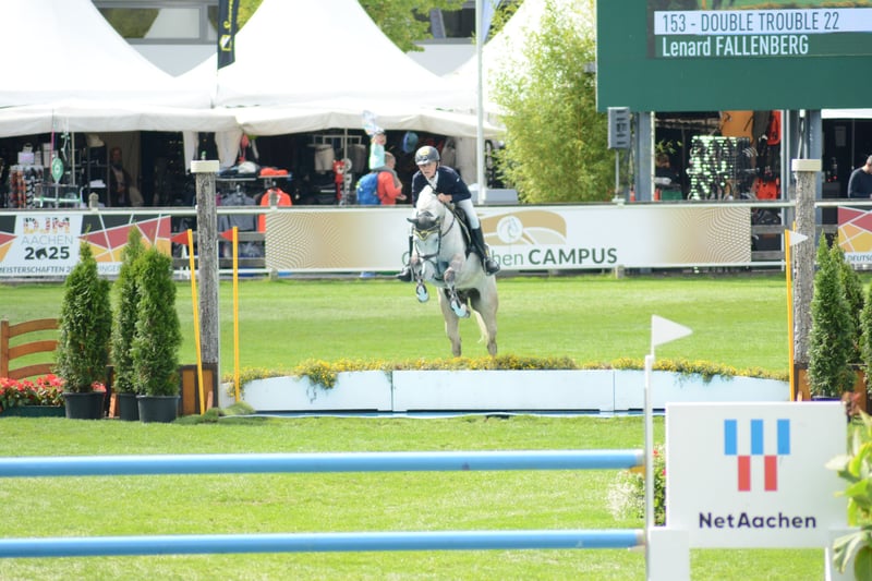 7-year-old grey gelding | self-bred and trained | Show jumping pony with heart and quality Some ponies stay forever in your heart – DOUBLE TROUBLE is definitely one of them. A 7-year-old grey gelding who impresses with his quality, talent, and positive attitude. A pony that shines in the show jumping arena with strength, composure, and absolute willingness to perform, while always remaining soft to ride and fully attentive to his rider. DOUBLE TROUBLE was bred and lovingly brought up by us, and has been carefully developed into the sport. His sporting achievements speak for themselves: > Finalist at the 2023 German Championships > 4th place in the final of the 2024 HKM German Championships (6-year-old show jumping ponies) > Winner of the Grand Prix 125 cm CSIP in Hagen a.T.W. & participant at the German Championships In addition, he boasts numerous wins and placings in L-level jumping competitions, as well as victories in M-class show jumping tests – a pony that has already achieved impressive milestones and still holds great potential for the future. What truly makes him special, however, is his character: well-behaved, affectionate, loving, always attentive, and consistently striving to give his rider a good feeling. A pony that is both sportily ambitious and an absolute sweetheart in everyday handling. For this exceptional gelding, we are looking for a home where he can continue to be supported and cherished with heart and appreciation. A place where he can showcase his qualities further and find the people who love him just as much as we do. DOUBLE TROUBLE embodies everything one wishes for in a modern show jumping pony.