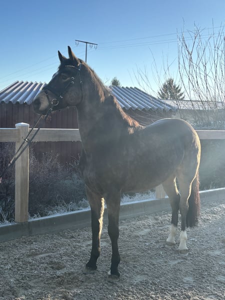 For sale: German riding pony – ideal for dressage! A beautiful bay gelding born in 2019 is available. Standing at 155 cm, he is perfect for ambitious riders seeking a reliable and talented horse. This pony is versatile in dressage and impresses with his elegant appearance and willingness to learn. He is friendly to handle, well-trained, and already shows great potential for advanced dressage lessons. If interested and for further information, please feel free to contact me. This special riding pony is looking for a new, caring rider who wants to develop his skills.