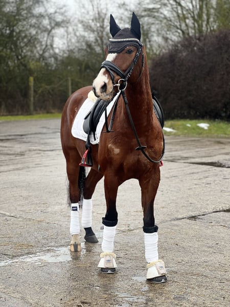 🐴 German Riding Pony, 4'9" hh, brown 🌟 Charming all-rounder with heart and talent – German Riding Pony, 7 years old 🪻 A pony like springtime – full of joy of life, sensitive, and ready to win hearts. • Name: Monacco • Breed: German Riding Pony • Height: 1.44 m • Color: Brown • Gender: Gelding • Age: 7 years • Stabling: Boxed, accustomed to 24/7 turnout • Training level: Dressage & jumping, E-level • Location: 23923 Ollndorf 🏇 Description We bought Monacco at the age of 4 for our daughter (then 10 years old) – he has been part of our family ever since. She grew up with him, learned to ride, and was regularly coached by trainers. Now she is 14 and unfortunately too tall for him. We have taken the step to move on to a larger horse and realize that we can no longer meet his riding needs. For this reason, we are selling Monacco with a heavy heart – to loving hands that will continue to nurture his sensitive nature and potential. This beautiful gelding brings daily joy with his fresh, spring-like personality, his fine riding qualities, and his loving character. With a height of 1.44 m, he is ideal for ambitious children, teenagers, or smaller adults looking for a versatile pony. Thanks to his curious nature, he approaches new situations openly and responds sensitively to his rider’s aids. He is very sensitive and quickly forms a close bond with his handler, making him a particularly trusting partner. Whether dressage, jumping, or relaxed hacks in the countryside – he always shows motivation, eagerness to learn, and willingness to perform. He remains calm and composed even in traffic. Due to his young age, he is eager to be further trained and developed – he has the best prerequisites to grow under a suitable rider. In daily handling, he is a real treasure: friendly and people-oriented – patient, cautious, and attentive even with children. He is and remains a pony – with all the charming independence that characterizes this wonderful breed. A partner who impresses not only with his sporting ability but also with his heart. ✅ Special features • Three clearly defined gaits with active hindquarters • Confident in handling – suitable even for younger riders • Open stable, box, and 24/7 turnout possible without issues • Dressage & jumping at E-level • Regularly vaccinated and dewormed • Farrier and loading trainable • Regular dental care • Regular hoof care 🎯 Areas of use • Dressage • Jumping • Leisure riding • Trail riding • Pony tournaments 📩 Contact If you are genuinely interested, we look forward to hearing from you. Our heart pony is waiting for its person – someone who appreciates his sensitive nature and wants to explore new paths together. Viewings and trial rides can be arranged individually.