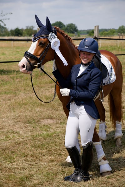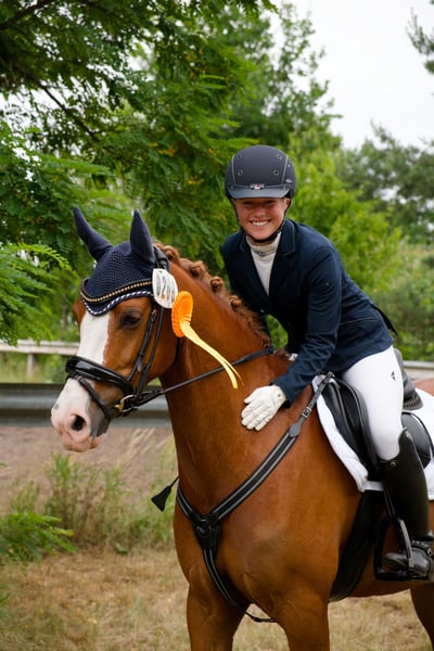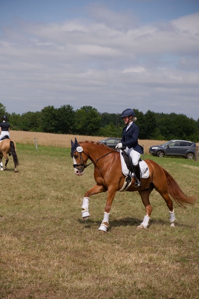For sale is a typy German Riding Pony, 8 years old, with competition experience. The gelding has been successfully placed in both dressage and show jumping up to class A. In dressage, he is currently on a great path towards L dressage! He impresses with a pleasant temperament and can also be ridden by children. Due to his versatile training, he is suitable for both competitive riders and as a loyal leisure partner. Key data: - German Riding Pony, gelding, 8 years old - Successfully presented in dressage and show jumping up to A - Loves trail rides and is always well-behaved there - Used to being outside during the day and in a paddock box at night - Fully vaccinated and regularly dewormed - Naturally good with farriers and loading - Good veterinary examination from 2021 available