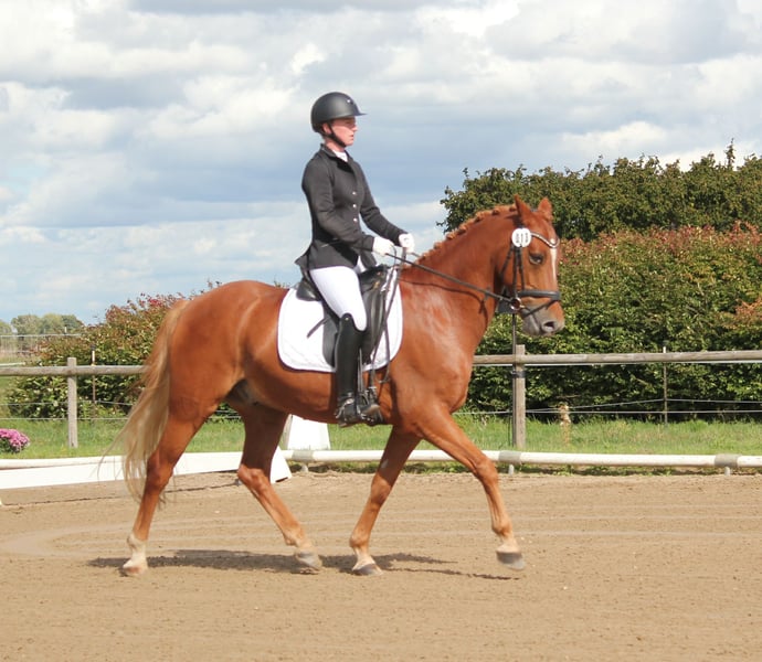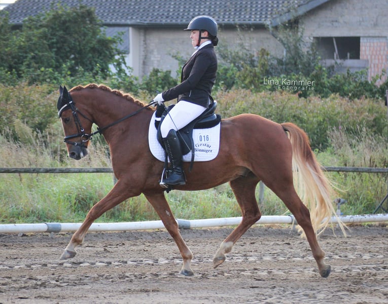 **Verkaufsanzeige: Deutsches Reitpony Wallach** Zum Verkauf steht ein wunderschöner Deutsches Reitpony Wallach, geboren im Jahr 2017. Mit einem Stockmaß von 148 cm ist er ideal für Reiter, die ein handliches und wendiges Pony suchen. Unser Fuchs besticht durch sein charmantes Wesen und seine hervorragenden Bewegungen, die ihn besonders für den Dressursport prädestinieren. Er hat bereits erste Erfahrungen in der Dressur gesammelt und zeigt großes Potenzial für weitere Fortschritte. Er ist brav im Umgang, gut erzogen und eignet sich sowohl für erfahrene Reiter als auch für ambitionierte Einsteiger, die mit ihm zusammen wachsen möchten. Wenn Sie auf der Suche nach einem zuverlässigen Partner für den Dressursport sind, dann ist dieser Wallach genau das Richtige für Sie! Bei Interesse oder für weitere Informationen kontaktieren Sie uns bitte. Wir freuen uns auf Ihre Nachricht! www.gestuet-boenniger.de