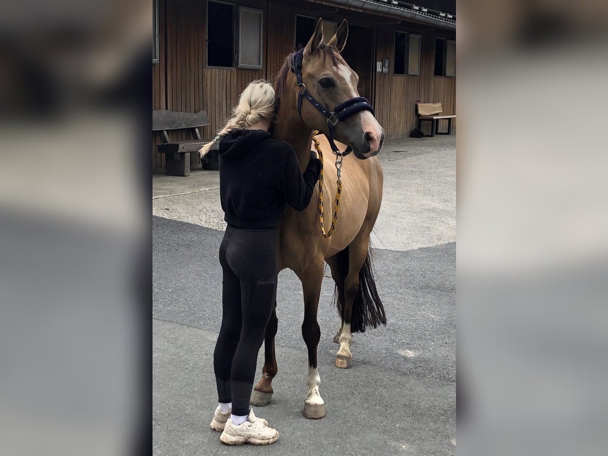 After long consideration, we have reluctantly decided to sell our beautiful 8-year-old riding pony gelding HK Der feine Diamant ("Diddy") by Der feine Lord AT. Our daughter has advanced and educated him a lot over the past years, but after finishing high school, she simply does not have enough time to care for him anymore. Diddy is 1.39m tall, has 3 above-average gaits, and accommodates a small adult very well. He is very comfortable to sit on, loves groundwork and small jumps, and is of course well-behaved for the farrier and loading. He has had little experience with small children, which is why we do not want to offer him as a children's or beginner pony. In handling, he is a real treasure, loves to cuddle, and enjoys being petted. Diddy has also performed very well in clinics. In the video, a 12-year-old boy is sitting on him for the first time, as our daughter is currently not on-site due to a longer internship.