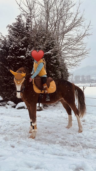 Talenté hongre de poney allemand avec expérience en compétition cherche une nouvelle famille. Terbofens Mr Musik (« Mucki ») Poney allemand de dressage Hongre 8 ans environ 1,54 m au garrot Formation / Réalisations : * Expérience en concours * Placé en dressage classe A * Début des leçons L * Placé en concours de saut d’obstacles classe E * Connaît les petits sauts en terrain varié Mucki possède de bonnes allures naturelles agréables et faciles à monter, ainsi qu’un bon impulsion contrôlable. Sur le manège et en carrière, il se montre motivé et travaille en douceur. Il comprend rapidement les aides et les exécute de manière fiable. La longe et le travail en liberté lui sont également familiers. Mucki recherche une ou deux personnes de référence avec lesquelles il pourra s’attacher. En extérieur comme en manège, il a besoin de quelqu’un qui lui donne confiance. Ce n’est pas un poney de câlins, mais il apprécie un entraînement régulier et varié. Actuellement, il est en paddock avec d’autres hongres. Il connaît aussi la box ou le paddock avec un accès quotidien au paddock. N’hésitez pas à nous contacter si vous êtes intéressé, une rencontre et une séance d’essai sont possibles. Le prix de la formation est conforme, mais nous privilégions un foyer sérieux et fiable.