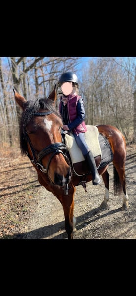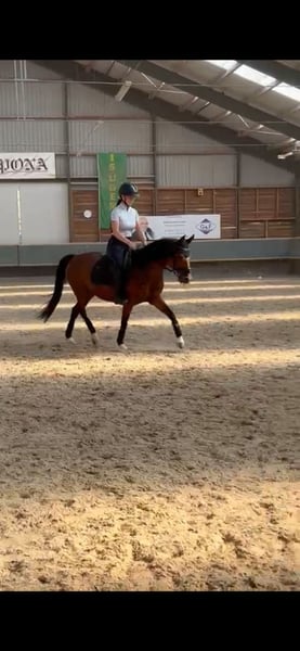 With a heavy heart, a talented pony mare with an excellent temperament is for sale, bringing her owner daily joy. She is not suitable for beginners but is looking for an experienced rider who can provide regular, varied training. The pony derives great pleasure from jumping and shows clear potential in this discipline. She is also very eager to learn in dressage, attentive, and quickly grasps new movements. She works with motivation and displays a positive attitude towards her work. Additionally, she is well-behaved and reliable in the field. She is seeking a person who can engage with her daily, whether through riding, groundwork, or other stimulating activities. Regular exercise and training are important to her, as she enjoys being challenged and learning new skills. Last year, she competed in her first competitions and handled this new experience with patience and calmness very well. She proved to be well-behaved, eager, and receptive to learning. An additional highlight is that she was awarded as a foal and recognized as a champion foal, which underscores her quality and makes her also appealing to breeders who value good conformation and promising development.