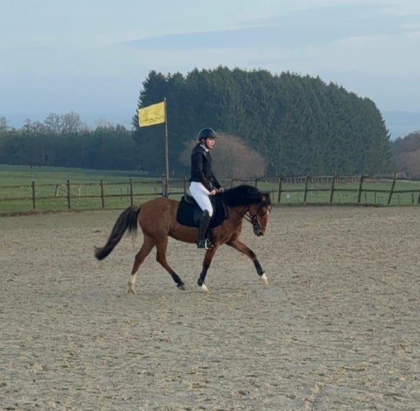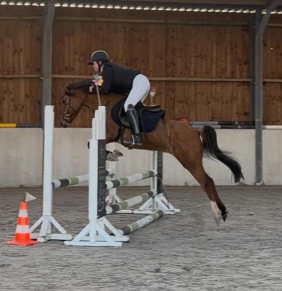 Zum Verkauf steht eine bald 11 Jahre alte, etwa 141cm große, Deutsche Reitpony Stute, eingetragen ins Stutbuch 1, mit voller Abstammung. Sie ist gut geritten und zeigt viel Vermögen und Ausdauer beim Springen. Da sie viel go hat, sollte man schon etwas reiten können. Sie ist aber nie böse und bockt auch nicht. Sie war schon mehrere Male auf Turnieren und macht das super mit. Bisher wurde sie in der Klasse E vorgestellt und sprang immer fehlerfrei mit Platzierung. Im Training spring sie auch schon auf A Niveau dies wurde aber kürzlich erst begonnen. Sie hat auf jeden Fall viel Talent und kann bei entsprechender Förderung weit kommen. Sie geht auch alleine ins Gelände und ist insgesamt cool und nicht schreckhaft. Auch im Umgang ist sie absolut brav und kennt auch Kinder. Preis steigt bei weiterem Training und sobald sie in Klasse A vorgestellt wurde! Krankheiten oder Allergien sind nicht bekannt. Eine AKU darf gerne gemacht werden. Für das Probereiten, Vorreiten oder anderes Ausprobieren des Pferdes berechnen wir 35€. Beim Kauf wird dies gutgeschrieben. Gerne anrufen oder eine Nachricht senden 0157 36803742 Alle Angaben ohne Gewähr, Preisänderungen vorbehalten, Transport möglich, Onlinekauf möglich
