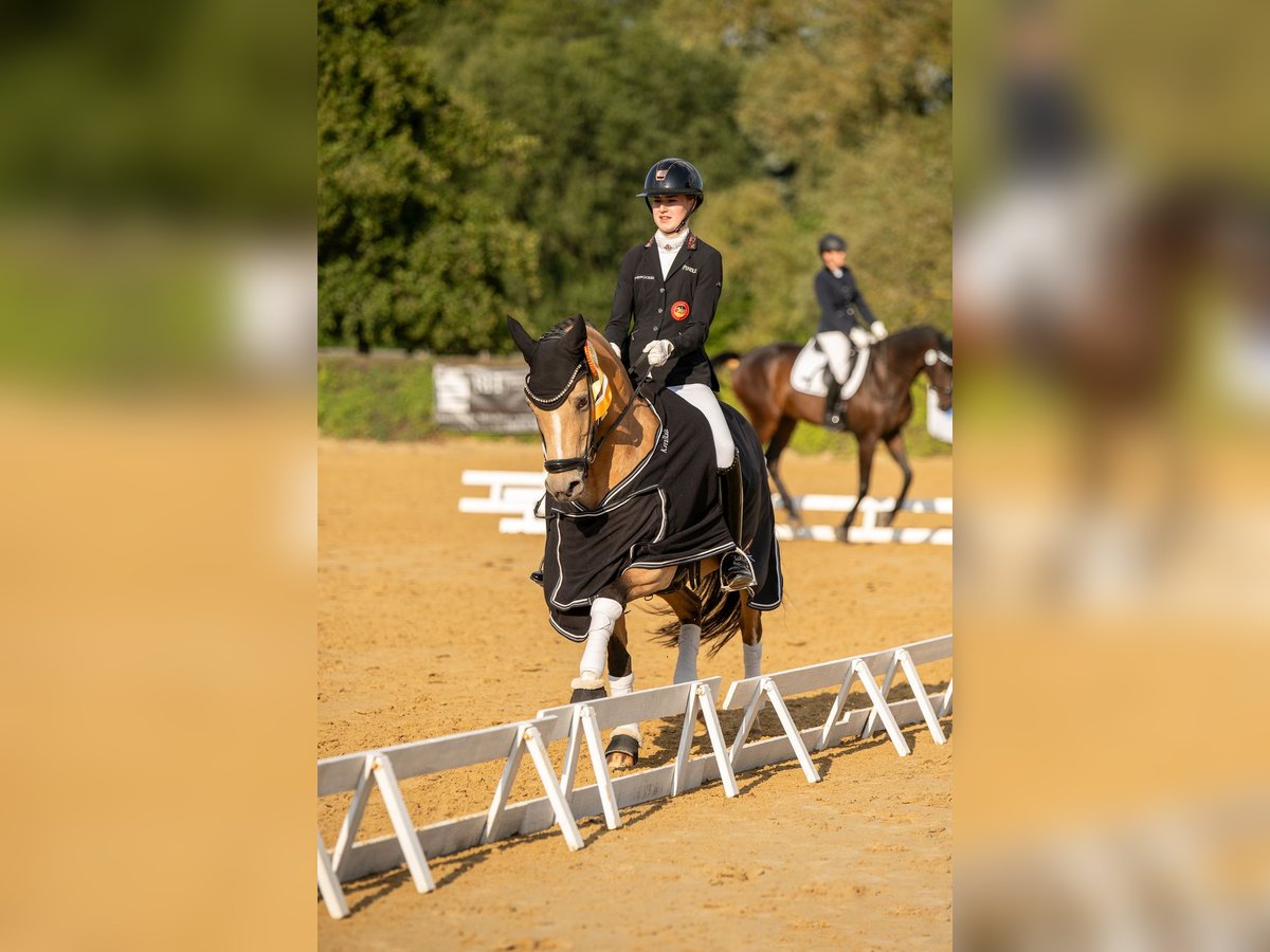 Since our 15-year-old daughter has already grown to 1.75 meters, we are seeking a new 5-star home for our FN-bred mare (pony), Goldmarie P. Ideally, she would suit a child with competitive ambitions. She has been with us since 2019. Goldmarie is FEI secure but can also be used in M-level and higher classes. She has numerous wins and placings, including: - Participation in the Bundeschampionat at age 3 - Three-time Landesmeisterin Pony-FEI (2023, 2024, 2025) – all tests between 69% and 73% - Nominated for the Hamburger Pony Derby in 2024 - Always placed at the South German Pony Championships (2023, 2024, 2025) - Also interesting as a broodmare – she has a licensed son - FEI Lifetime Certificate & FEI Passport Serious inquiries only! Please contact us via WhatsApp at 0177 3217432. Good transport connections, including a nearby airport and direct motorway access.