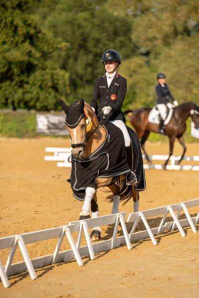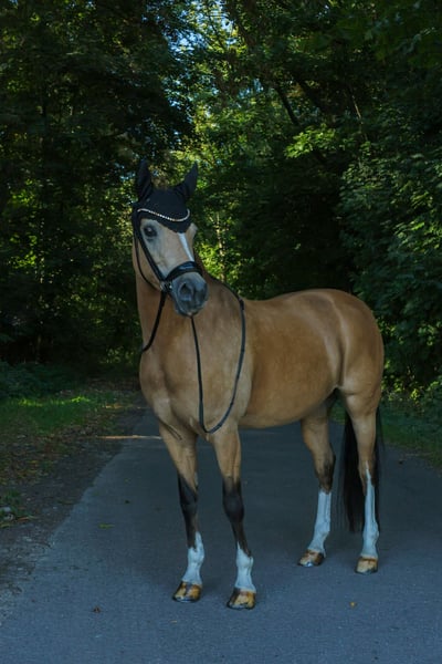 Ponieważ nasza 15-letnia córka ma już 1,75 m wzrostu, poszukujemy dla naszej niemieckiej państwowej klaczy (Pony) Goldmarie P nowego domu na 5*****. Idealnym kandydatem byłoby dziecko z ambicjami sportowymi. Od 2019 roku jest z nami na stałe. Goldmarie jest pewna startów w FEI, ale może być również wykorzystywana w konkursach na poziomie M i wyżej. Odniosła liczne zwycięstwa i miejsca na podium: - Udział w Mistrzostwach Federalnych w wieku 3 lat - Trzykrotna Mistrzyni Landu w kategorii Pony FEI (2023, 2024, 2025) – wszystkie konkursy z wynikiem od 69% do 73% - Nominacja do Hamburger Pony Derby w 2024 roku - Mistrzostwa Południowych Niemiec w kategorii Pony w latach 2023, 2024 i 2025 – zawsze na podium - Również interesująca jako klacz hodowlana – ma już potwierdzonego potomka - Certyfikat FEI na całe życie i paszport FEI Prosimy o kontakt wyłącznie w przypadku poważnego zainteresowania! Chętnie przez WhatsApp pod numerem 0177 3217432. Dobrze skomunikowana lokalizacja dzięki bliskości lotniska oraz bezpośredniemu połączeniu autostradowemu.
