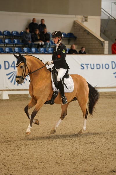 Da unsere 15jährige Tochter bereits 1,75 m groß gewachsen ist, suchen wir für unsere FN-Bundesstute (Pony) Goldmarie P ein neues 5*****-Zuhause. Ideal wäre ein Kind mit sportlichen Ambitionen. Sie ist bei uns seit 2019 aufgewachsen. Goldmarie ist FEI sicher, ist aber auch in M und höher einsetzbar, sie ist Dressurpferde M platziert. Sie hat zahlreiche Siege und Platzierungen: - 3jährig Teilnahme Bundeschampionat - 3fache Landesmeisterin Pony-FEI (2023, 2024, 2025) - alle Prüfungen zwischen 69% bis 73% - 2024 Nominierung Hamburger Pony-Derby - Süddeutsche Ponymeisterschaften 2023, 2024, 2025 - immer platziert - auch als Zuchtstute interessant - hat bereits gekörten Sohn - FEI-Lifetime-Certificate & FEI-Pass - sehr gute AKU vorhanden Anfragen nur bei ernsthaftem Interesse! Gern per WhatsApp über 0177 3217432. Gute Verkehrsanbindung auch durch nahegelegenen Flughafen und direkte Autobahnanbindung.