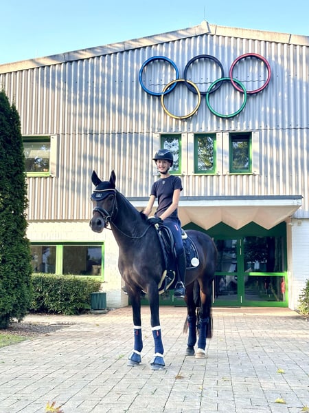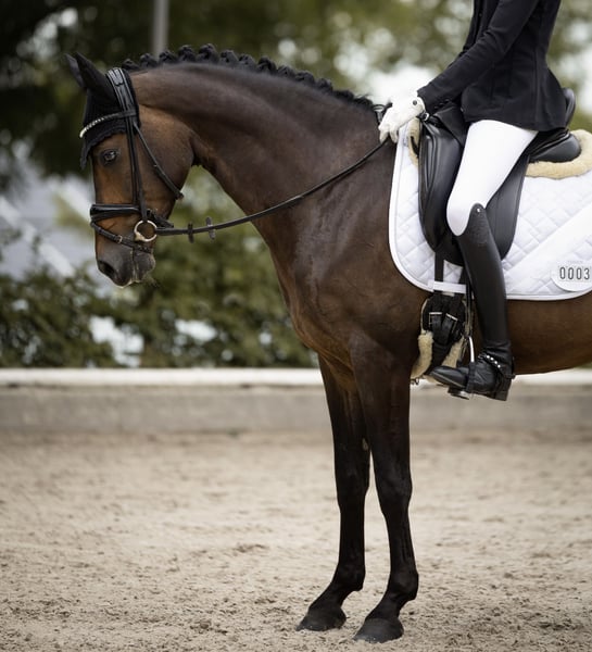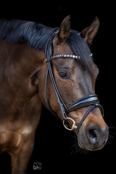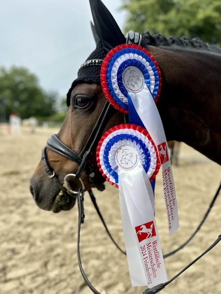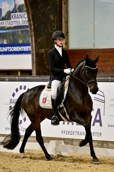 For sale is a beautiful, dark brown German Riding Pony mare, born in 2015. With her attentive nature, she is the perfect sport and leisure partner for all riders looking for a talented and hardworking pony. Dressage - Training level: L (Multiple winner in DPA and DRA; placed in DPL, placed in DRL) We bought Grace at the age of 6 from the breeder and continued her training. Due to her sire, Amaryllis Sensation D, she has a talent for eventing. We have trained her with a focus on dressage, but she has always enjoyed jumping in training and loves to go out for rides confidently and safely. At the age of 6, she won Dressage Horse A and was third in her first Dressage Horse L. At 7 years old, she was multiple times victorious with scores of 8 with a 13-year-old rider and won 🥈 at the Westphalian Young Talent Championship Pony Dressage. At 9 years old, she won 🥉 with our 14-year-old daughter at the Westphalian Young Talent Championship Pony Dressage and participated in the final of the Federal Young Talent Championship. At the same time, they placed in their first Dressage Rider L tests. Now our daughter has grown too tall for Grace and has switched to a larger horse. Grace is always hardworking, eager to learn, and reliable in her lessons. She loads easily with our daughter, is experienced in competitions (64 dressage starts - she has also participated in overnight competitions without any issues), and is an absolute ribbon collector. She gets along well with other ponies and horses and is gentle in handling. She brings a lot of experience in the A Championship Tour and potential for the L Tour. There are clinically unremarkable vet check results from 2021. Grace has not been sick or injured since then. Included are a dressage saddle, bridle, and various pony accessories. Please, no inquiries from dealers or intermediaries.