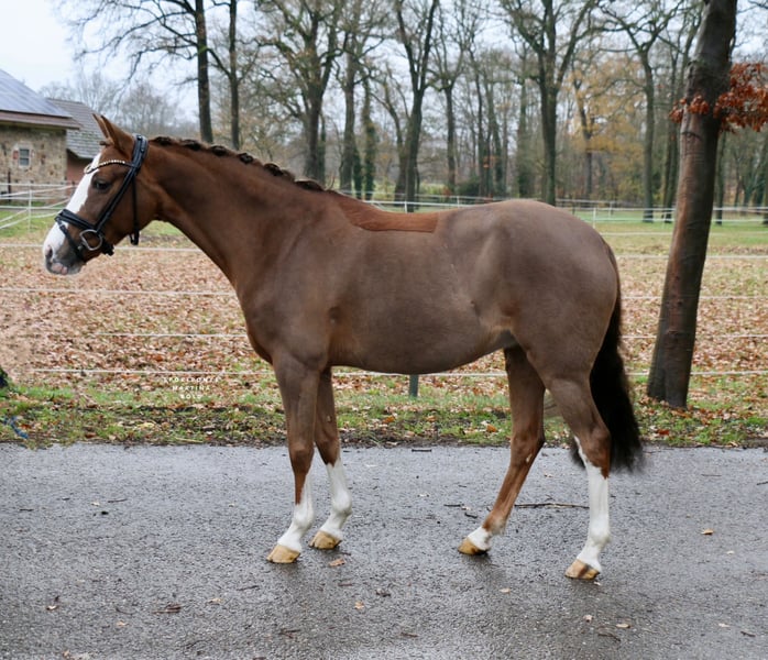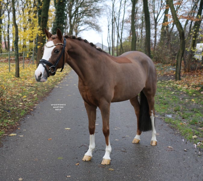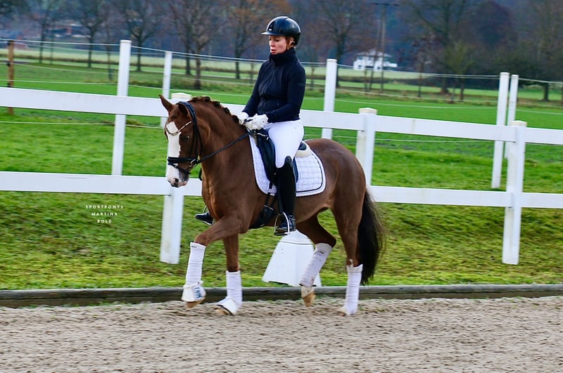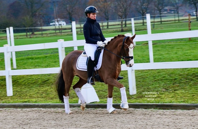 | Advertisement | | DR | Mare | Chestnut | Born 2014 | 14.4 hh | Sired by Golden State out of Dressman "Goldstück" is a stunningly beautiful mare, impressing not only with her appearance but also with three good basic gaits. She has already demonstrated her talent in competition. Her recent dressage tests, ridden by her 11-year-old rider, earned scores of 8 and 8.1 in both A- and L-level dressage. "Goldstück" has been used sparingly in competition, as she was purchased as a school pony for her still very young rider, who was to learn riding on her own pony at their home stable. "Goldstück" proved to be the perfect teacher, enabling her rider to successfully enter higher FEI-level competition at just 12 years old. The mare has an excellent size for smaller riders but also comfortably suits smaller adult riders. In addition to her sporting career, she is also very interesting from a breeding perspective and has already produced a very beautiful foal. "Goldstück" is now looking for a new small rider to help them start their riding journey once again. The mare is unshod in the video. A recent radiological exam, including back images from 2025, is available. https://youtu.be/_v2IDxajaHE?si=5-A6cokHZqam1wI5 For serious inquiries, please contact us by phone at +49 170 7941333.