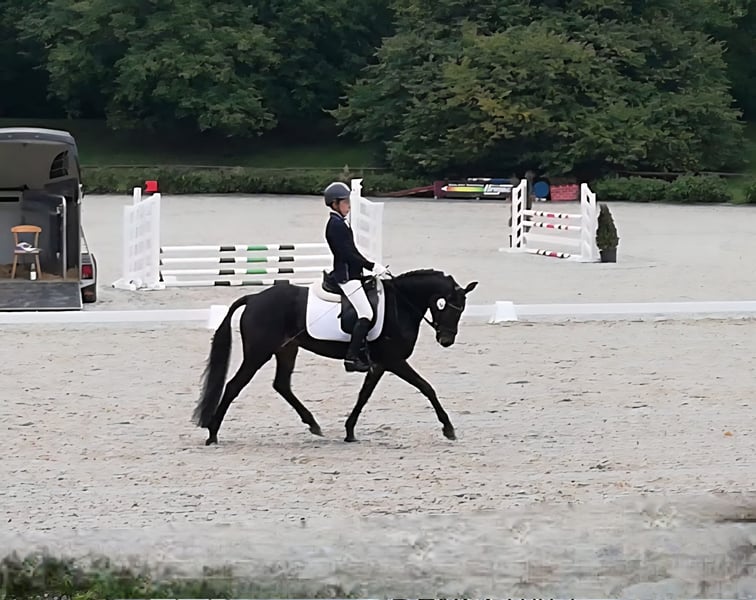 Double-licensed children's pony / dream pony: View, test ride, and fall in love 💝 Stunning, dark bay 13-year-old pony mare (height 1.48 m) with an outstanding work ethic and a loving temperament seeking a new 5-star home. Owned by a family for 7 years, well-trained in dressage and jumping. She is easy to ride, sensitive, eager to learn, motivated, and absolutely people-oriented – a true treasure in daily handling. Dressage: successful from RW up to L*, placed or winning at every competition in L* dressage this season. Jumping: introduced and placed up to E-level with a 12-year-old child. 2020/2021 member of the Baden-Württemberg Combined Training Squad. She is suitable for dressage work, jumping, cross-country, hacking (including without saddle), lunging, swimming in the lake, groundwork, and cuddling sessions. Due to her slender build, she is not suitable as a weight carrier. A family home with a paddock box would be ideal; her final place of residence. Price is negotiable, and location takes priority. Additional photos and (competition) videos are available upon serious inquiry. Due to her owner’s retirement from riding, her complete tack and equipment can also be purchased. A fee of €25 is charged for trial riding to protect the pony from riding tourism. This fee will be deducted from the purchase price if she is sold. Price negotiable: €18,000 Location: Baden-Württemberg NO sale to dealers, resellers, or riding schools!!! NO leasing or loan options available.