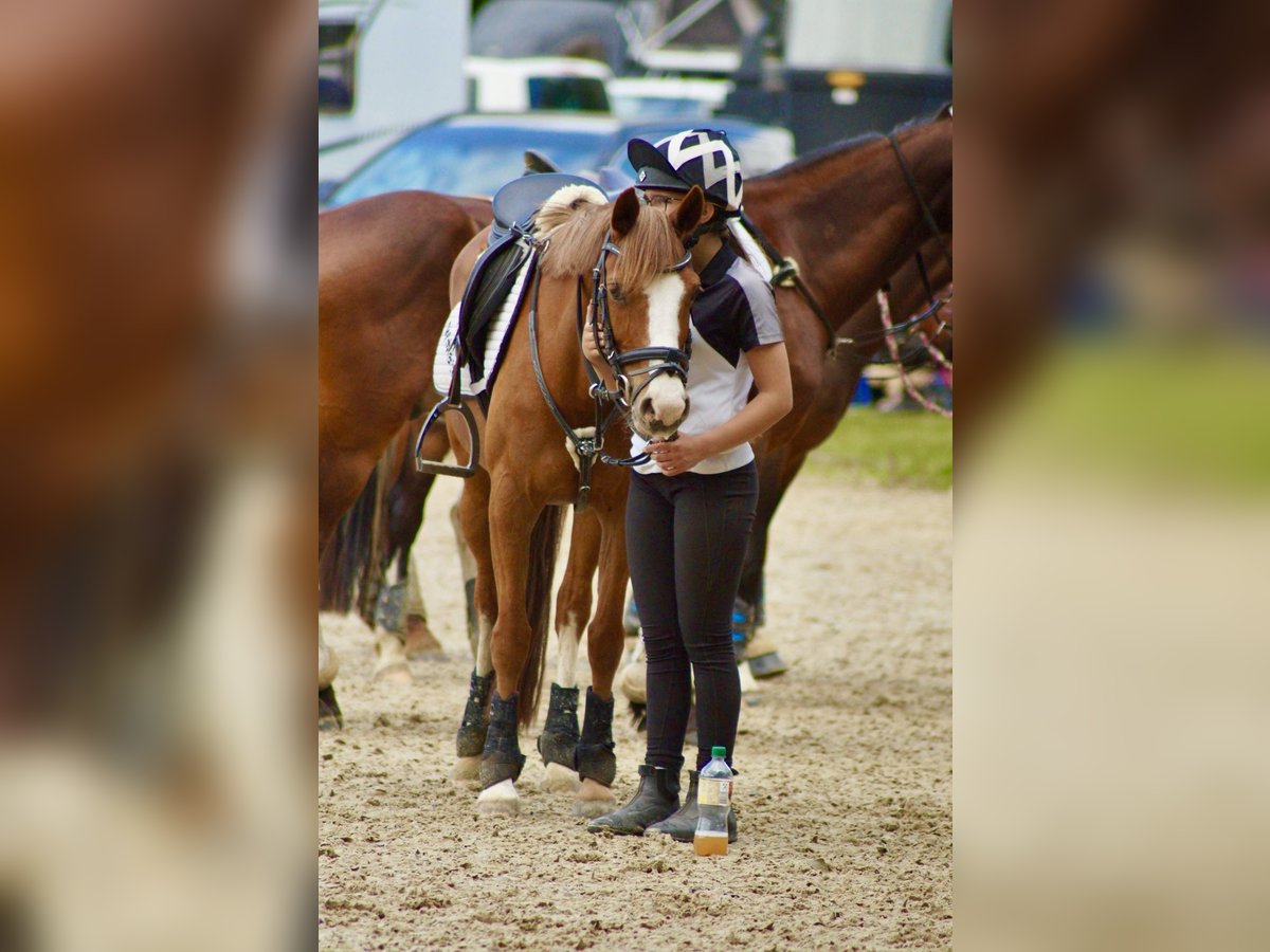Wir verkaufen unsere hübsche Reitponystute Dèjà vu, genannt Dolly, mit vielseitiger Veranlagung und Potenzial für Sport und Zucht. Sie ist Staatsprämienstute und daher auch für die Zucht interessant. Dolly ist ein- und zweispännig gefahren und zeigt sich dabei motiviert und zuverlässig. Unter dem Sattel ist sie angeritten in allen Grundgangarten, benötigt hier jedoch noch weitere Ausbildung und Förderung. Sie ist verladefromm, barhuf und sowohl Offenstall als auch Box über Nacht gewohnt. In der Herde verhält sie sich eher rangniedrig und unkompliziert. Im vergangenen Jahr hat sie an Mounted Games-Turnieren teilgenommen, hat sich in der Vergangenheit als Fahrpony sogar für das Bundeschampionat qualifiziert und kennt somit auch Turnieratmosphäre. Aufgrund ihres Ausbildungsstandes ist sie noch nicht für Kinder oder Anfänger geeignet, eignet sich aber für Reiter, die ein vielseitiges Pony weiter ausbilden möchten bzw. als erfahrenes Fahrpony. Videos vom Fahren und Reiten können auf Anfrage gerne zugesendet werden. Bei Interesse oder weiteren Fragen freuen wir uns über eine Nachricht.