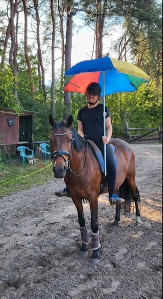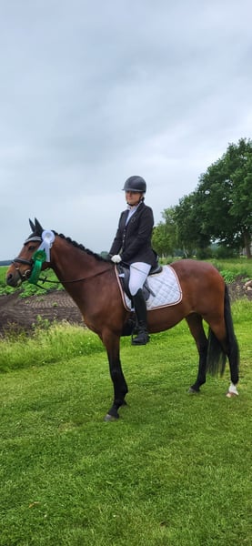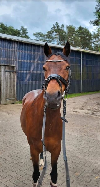Wegen Umstieg auf Großpferd suchen wir ein neues Zuhause für unsere Stute Nika. Sie ist 13 Jahre alt, mit 1,47 m eingemessen und verfügt über tolle GGA. Unsere Tochter hat sie in RW, DRW und in E und A-Dressur erfolgreich vorgestellt. Egal ob Hängerfahren,Schmied, Hunde oder Traktoren: für Nika kein Problem! Ins Gelände geht sie sehr gerne (auch alleine) und auch Springen/Stangenarbeit bereiten ihr viel Freude. Ebenso hat sie viel Spaß an Bodenarbeit und Gelassenheits-Training oder auch einfach nur am "rumtüdeln" - Nika geht mit Ihrem Menschen durch dick und dünn!!! Sie lebt bei uns im Offenstall, kennt aber auch die Box. Anfang 2022 ist sie bei uns eingezogen und war immer gesund. Nika möchte immer alles richtig machen, deshalb können wir uns gut eine(n) Anfänger(in) für sie vorstellen. Wir verkaufen nicht an Händler oder Schulbetriebe!!! Platz vor Preis!!! Bei Interesse können Viedeos verschickt werden.