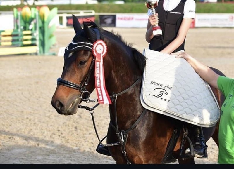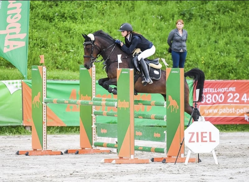 Baileys 9 ehemalige Bonita BBA ist ein sehr ehrgeiziges Pony welche im Springen immer ihr bestes gibt. Sie ist ideal geeignet für Reiter/innen die eine feine Hand haben und mit sensiblen Pferden umgehen können. Am Boden ist Sie eines der bravsten Pferde und kuschelt gerne. Lässt sich Problemlos verladen und gibt auf Turnieren ihr bestes Jedoch hat Sie sehr viel Ausdauer und ist auf lange Zeit für keine Box geeignet und steht aktuell auch in einem Freilaufstall (auf Turnieren ist die Box kein Problem). Wir würden uns für Sie wünschen das Sie ein liebevolles Zuhause findet in dem Sie sich wohl fühlt. Für genauere Infos Pn