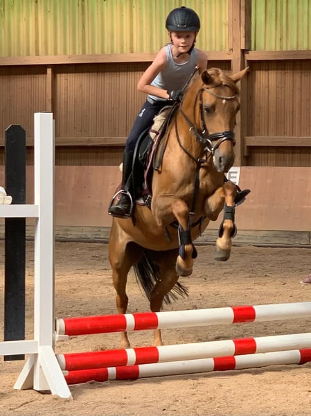 Sehr liebe Deutsche Reitponystute, 16 Jahre jung, völlig unverbraucht, fein zu reiten und sitzbequem, absolut geländessicher, ob alleine oder in der Gruppe, mit leichtfüßigen Bewegungen und guter Abstammung, deshalb auch sehr interessant zur Reitponyzucht, macht auch guten Sprung, aber nicht weiter gefördert, von Führzügel bis A-Dressur, auch von kleineren Kindern problemlos zu pflegen, putzen, führen, etc. Nur wegen Umstieg auf Großpferd schweren Herzens, in allerbeste Hände im Auftrag inkl. Dressursattel, Trense, usw. abzugeben. Bitte nur ernstgemeinte telefonische Anfragen, Nachrichten werden nicht beantwortet! Probereiten wird mit 30 € berechnet (wird bei Kauf verrechnet).