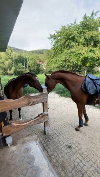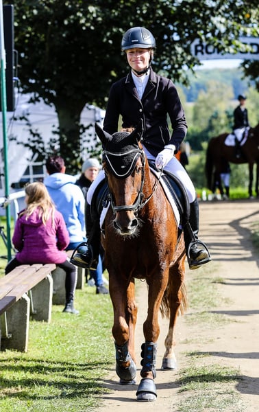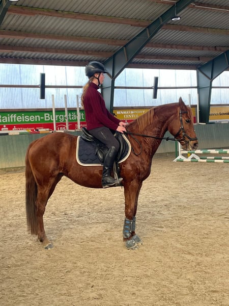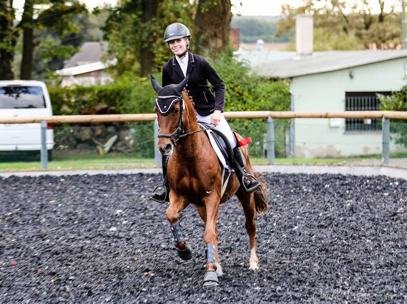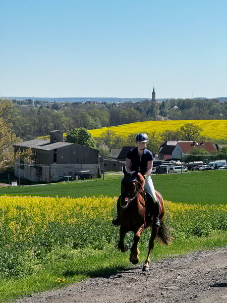 Meine zuckersüße Alva benötigt mehr Unterhaltung als ich ihr bieten kann. Wir waren in der Vielseitigkeit unterwegs, wo sie sich sehr wohl fühlt. Im Umgang und Handling ist sie total einfach und umgänglich. Die Herausforderung besteht eindeutig darin einen ruhigeren Takt zu finden als sie vorgibt. Ihr übertriebenes Go fordert leider manchmal Fehler ein. Hier ist ein erfahrener Reiter nötig. Mit viel Gefühl ist das aber kein Problem. Wir sind gespannt auf alles neue.