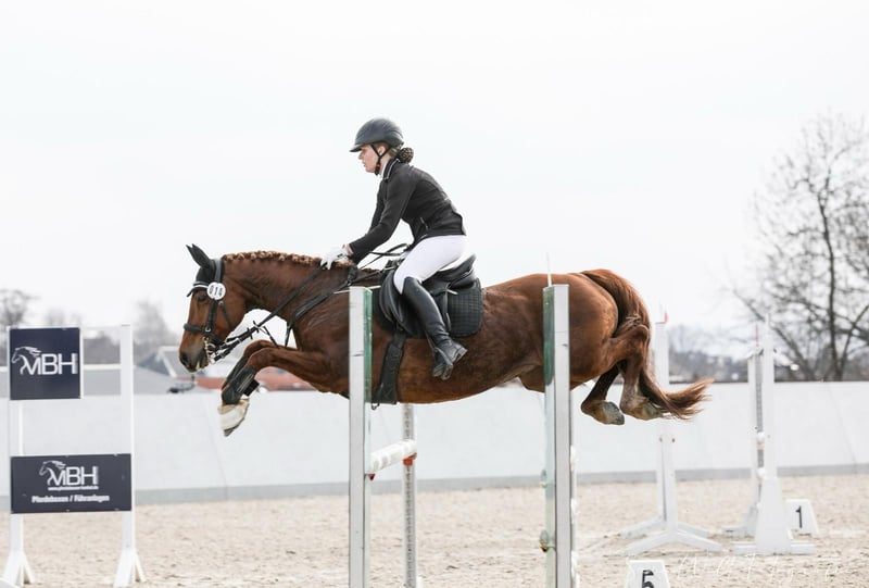 Mi dulce Alva necesita más entretenimiento del que puedo ofrecerle. Hemos competido en concurso completo, donde se siente muy cómoda. En el manejo y la doma es muy fácil y sociable. El verdadero reto consiste en encontrar un ritmo más tranquilo que el que ella marca. Su exceso de energía y su impulso a veces provocan errores. Aquí se requiere un jinete experimentado. Con mucha sensibilidad, eso no es un problema. Estamos abiertos a nuevas experiencias y desafíos.