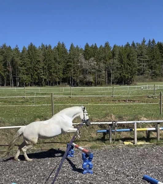 Ich suche für meine 16-jährige Deutsche Reitpony-Mix Stute ein neues, liebevolles Zuhause, da mir leider die Zeit fehlt, um ihr gerecht zu werden. Sie ist ein tolles Pony, das sowohl Jugendliche als auch Erwachsene gut abdeckt. Sie ist ein Allrounder, wird von mir allerdings nur Freizeitmäßig geritten. Sie springt mit Leidenschaft kleine Sprünge und kennt einfache Dressurarbeit, dies wurde von mir aber in den letzten Jahren nicht weiter gefördert. Sie liebt lange Ausritte alleine oder in der Gruppe. Auch vom Boden lässt sie sich gut arbeiten. Longieren und auch Doppellonge macht sie gerne. Auch beim Schmied ist sie problemlos.