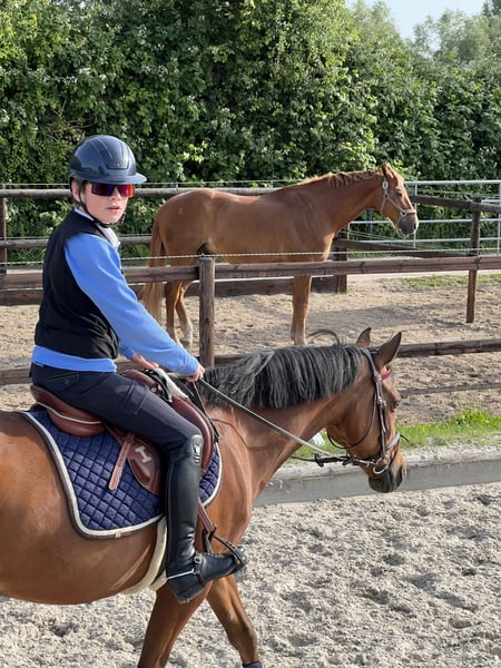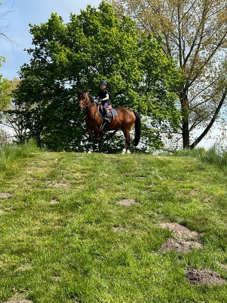 18 Jährige braune 1,42 cm hübsche, leicht rittige Ponystute. Schweren Herzens verkaufen wir Crestons Liberty oder auch liebevoll Katjes genannt wegen Umstieg auf Pferd. Sie ist sehr schön und leicht in der Hand, auf L Dressur Niveau ausgebildet und auch L platziert. Dressur A** gewonnen, diverse Platzierungen. Springen bis A ausgebildet, A ** gewonnen. Sie springt sehr gerne, braucht aber stets einen sicheren Reiter! Katjes springt gerne auch Geländehindernisse, mit den Vorbesitzern ist sie bis VA gelaufen. Kennt ohne Sattel reiten. Ist lieb auf Turnier, die letzten Jahre war sie in Reiterwettbewerben unterwegs. Die Stute wird nicht als reines Anfänger Pony verkauft! Da sie auch gerne flott unterwegs ist. In Kombination mit einem guten Reiter und viel Auslauf, kennt Offenstall wie auch Box, ist Katjes auch für schwächere Reiter reitbar. Kleine Erwachsene deckt sie gut ab. Sie läuft Barhuf und war bei uns nie krank. Kein Ekzem, keine Rehe. Kennt gemischte Herden. Lässt sich gut verladen, schmiedefromm, regelmäßig beim Zahnarzt, Herpes und Influenza geimpft. Katjes kann jederzeit gern Probe geritten werden.