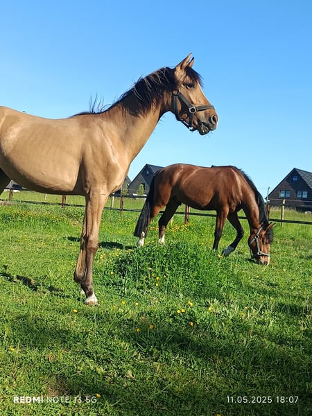 Leider bleibt man nicht immer fit und das ist der Grund warum ich sie verkaufe. Ich habe sie für mich gekauft und sie anzureiten und vielleicht später zu züchten. Nun hat sich einiges geändert. Lahja ist sehr menschenbezogen und sie steht mit meinem vier jährigen Wallach 24/7 auf der Weide. Sie kennt eigentlich alles was man in dem Alter schon wissen soll, vielleicht auch ein bisschen mehr weil sie täglich Kontakt zu mir hat. Würde mich sehr freuen wenn sie ein tolles zu Hause bekommt wie bei mir. Kein Not Verkauf aber ein neues, gute zu Hause ist mir wichtig.