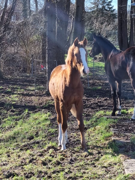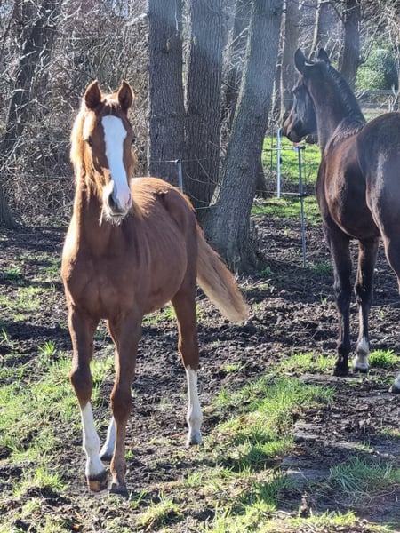 Jährige Fuchsstute abzugeben geb. 17.04.2025. GGA,Fohlenprämie, Abstammung Cox Nicholson. Muttervater Davenport II nur Abholung. Besichtigung ist jederzeit möglich. Kann noch bis Mai bei uns bleiben.